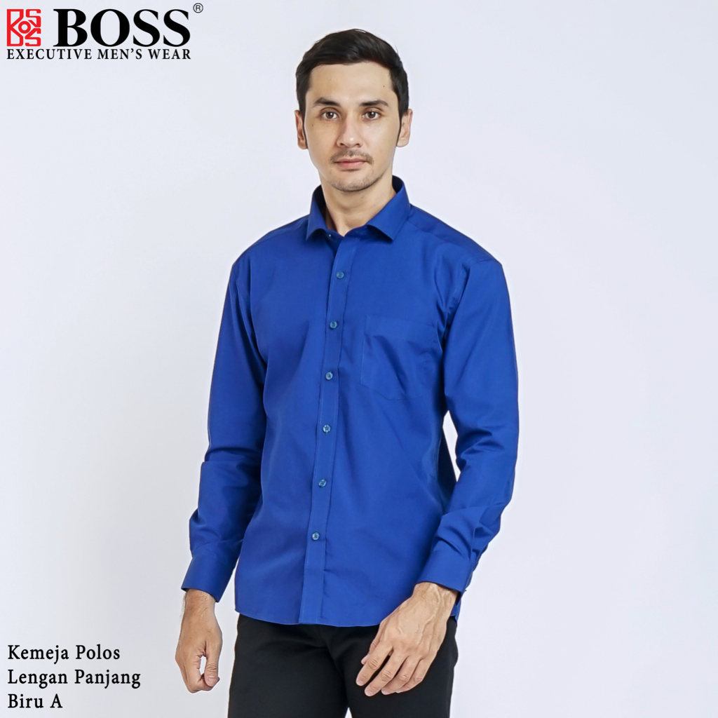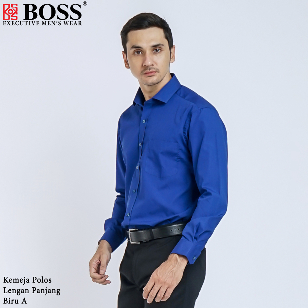 Kemeja Polos Pria Lengan Panjang Atasan Hem Kantor Cowok Regularslim Fit Biru Muda Elektrik A