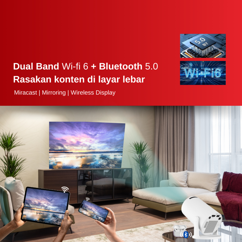 Okla K77 X SMOON Smart Proyektor TV - 200 Lumens - Wifi - Ultra Hd Multifungsi - 720p