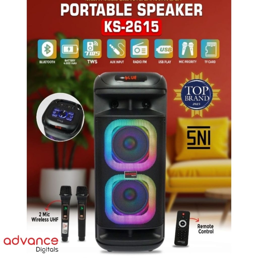 ADVANCE SPEAKER PORTABLE BLUETOOTH KS-2615 KARAOKE FREE 2 MIC