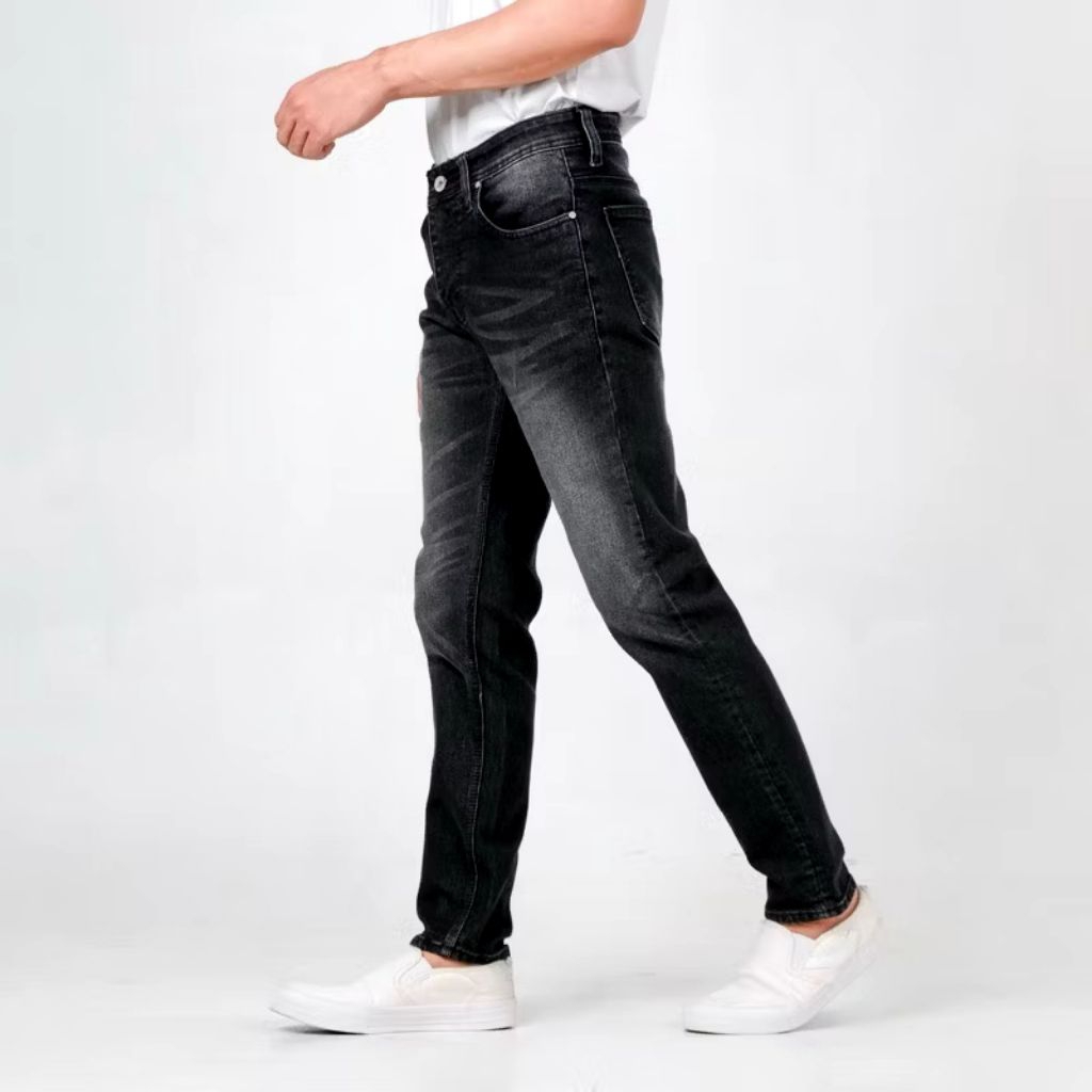 Celana Jeans Pria Panjang Slimfit Skinny Wisker Hitam Blackjazz Denim Premium