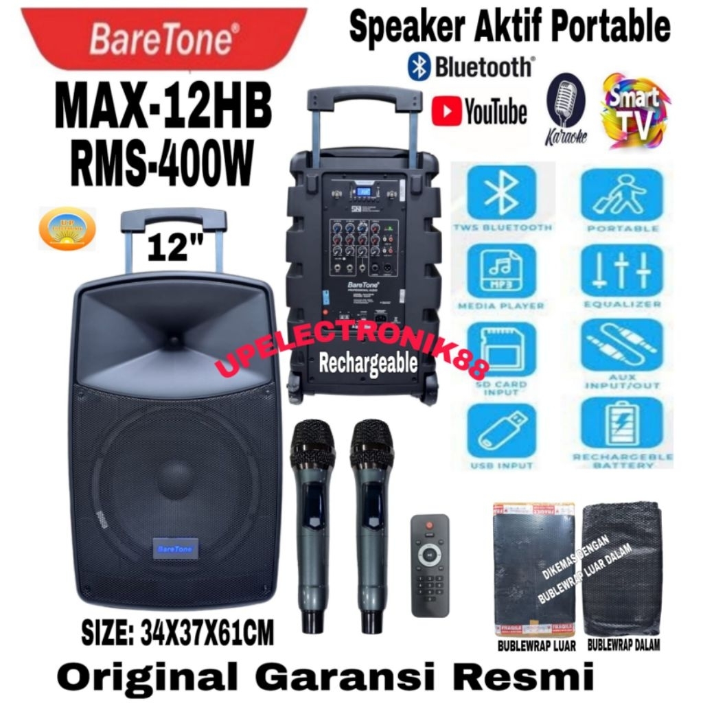 Speaker Portable Wireless 12 Inch Baretone MAX12HB 400 Watt Original