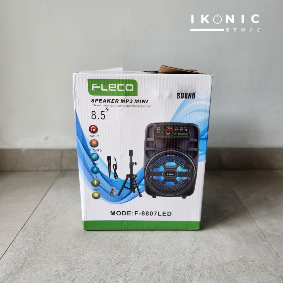 IKONIC Speaker portable bluetooth LED 8.5" Free Remote dan Tiang F-8807