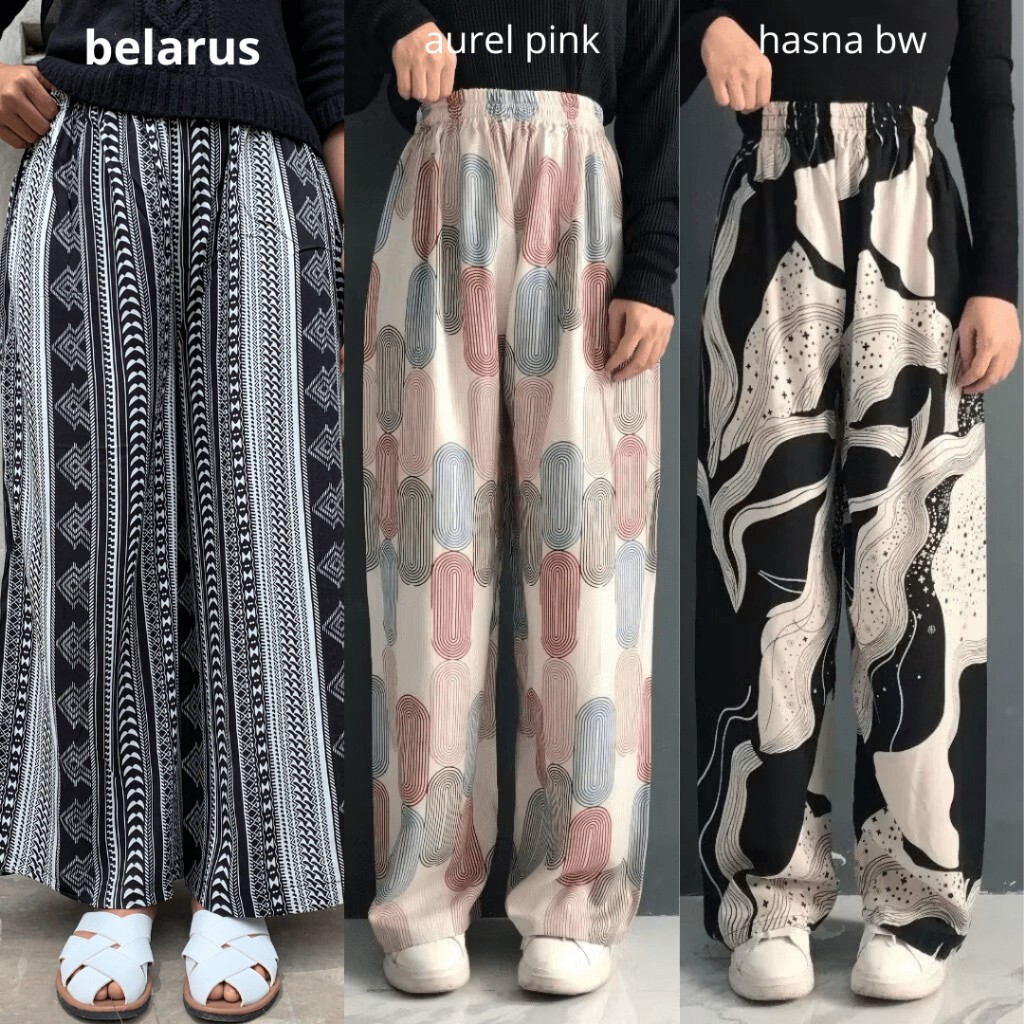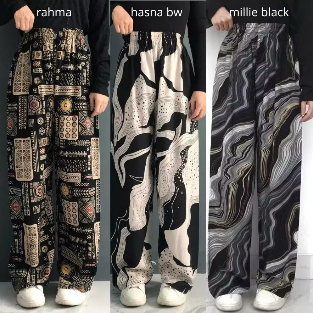 Paket Murah Isi 3 Pcs Celana Kulot Hommy Part 2 KALLYOUTFIT Kulot Wanita Rayon Viscose Premium Simple Elegant Mewah Motif Rayon Terlaris