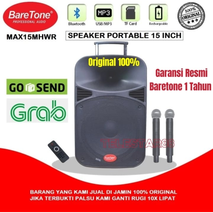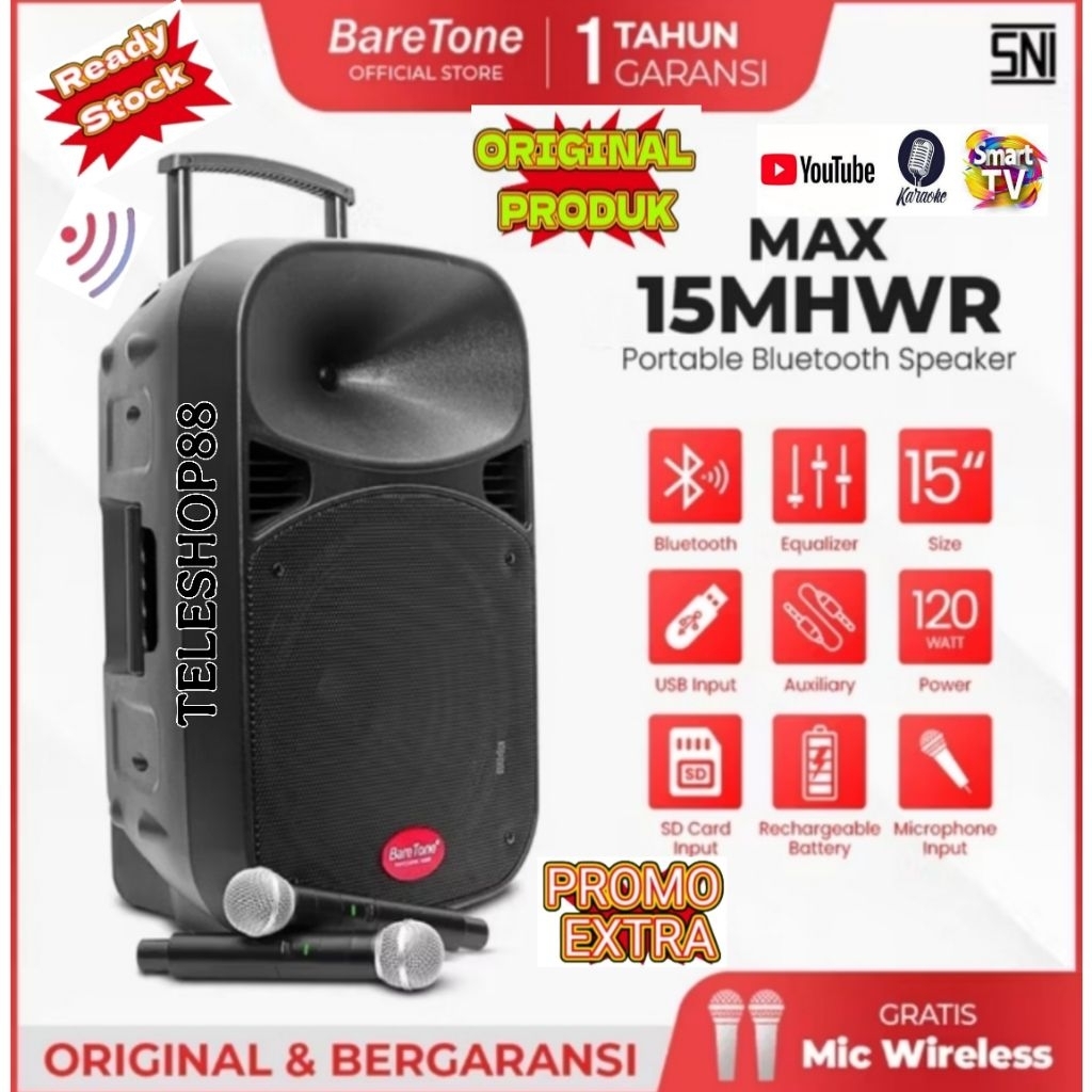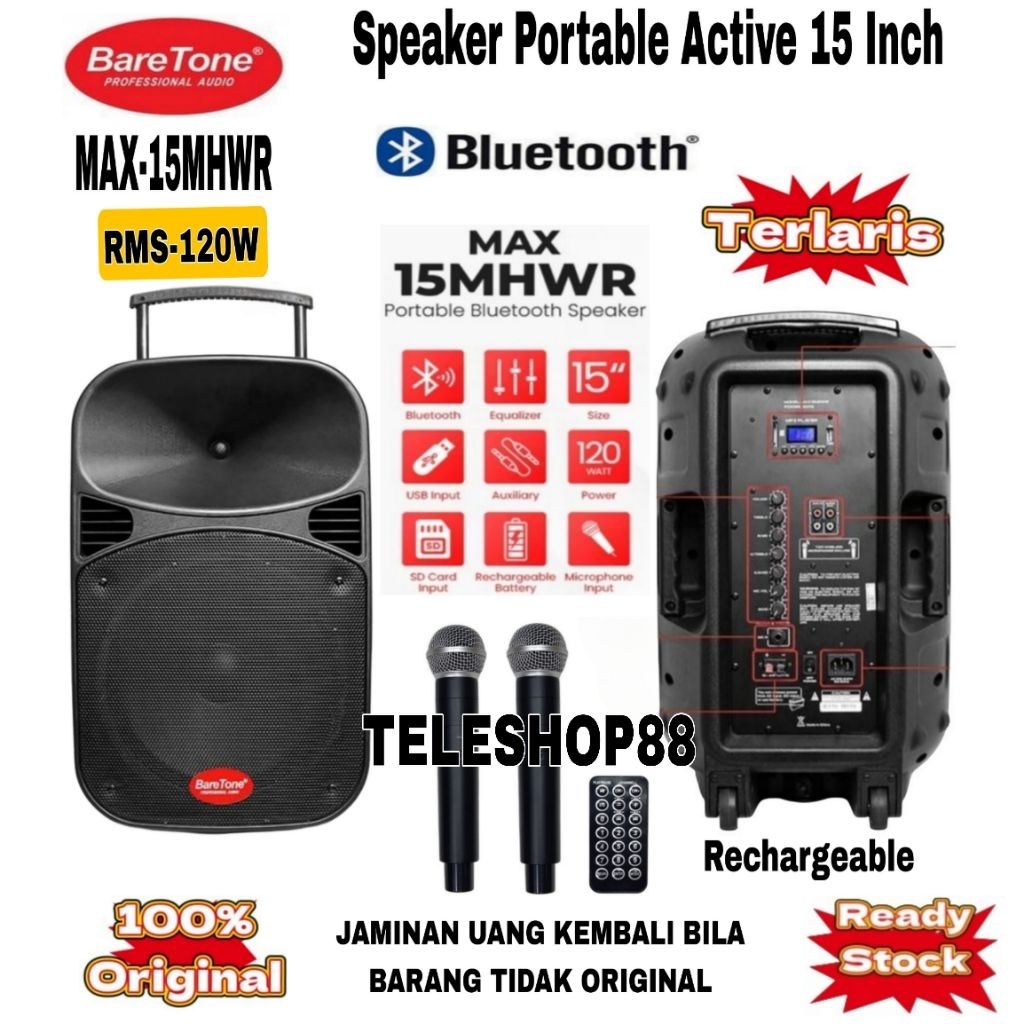 Speaker Aktif Portable 15 Inch Baretone MAX15MHWR Bluethooth Usb Original