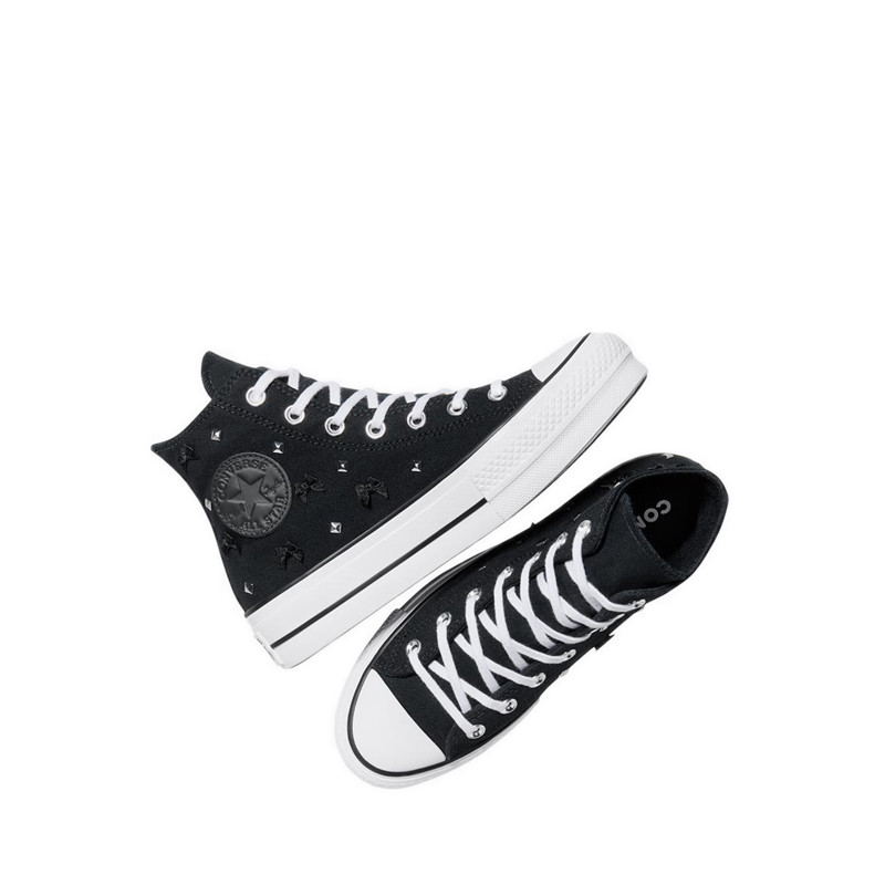 Sepatu Sneakers Wanita Platform Kasual Warna Black Silver White – Converse