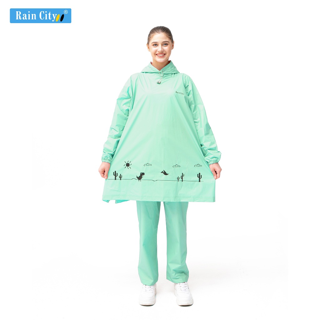 mall inline badgeRAIN CITY Jas Hujan Setelan Poncho Celana Dino Pixel Warna Lucu Motif Dino 70044