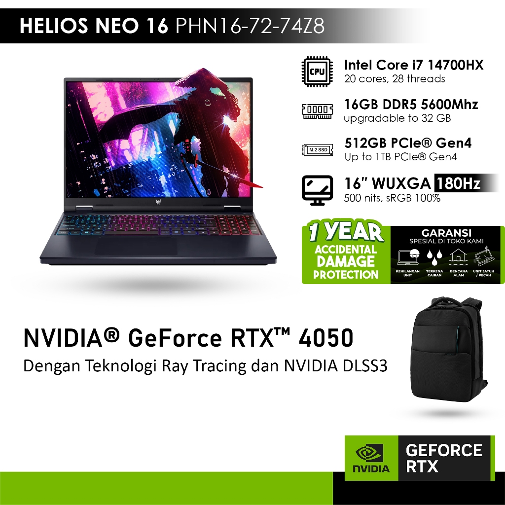 ACER PREDATOR HELIOS NEO 16 PHN16-72-74Z8 GeForce RTX™ 4050 6GB - i7 14700HX 16GB 512GB WINDOWS 11