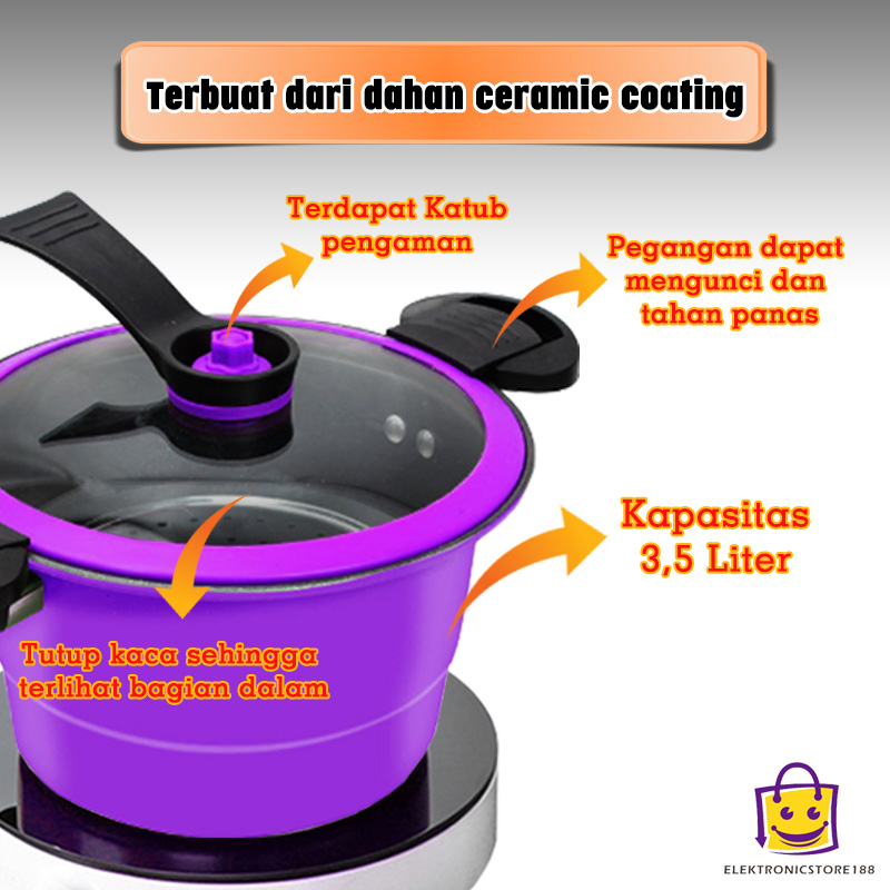 (E.S) Panci Presto 3.5 Liter Anti Lengket Panci Telfon Panci Pressure Cooker