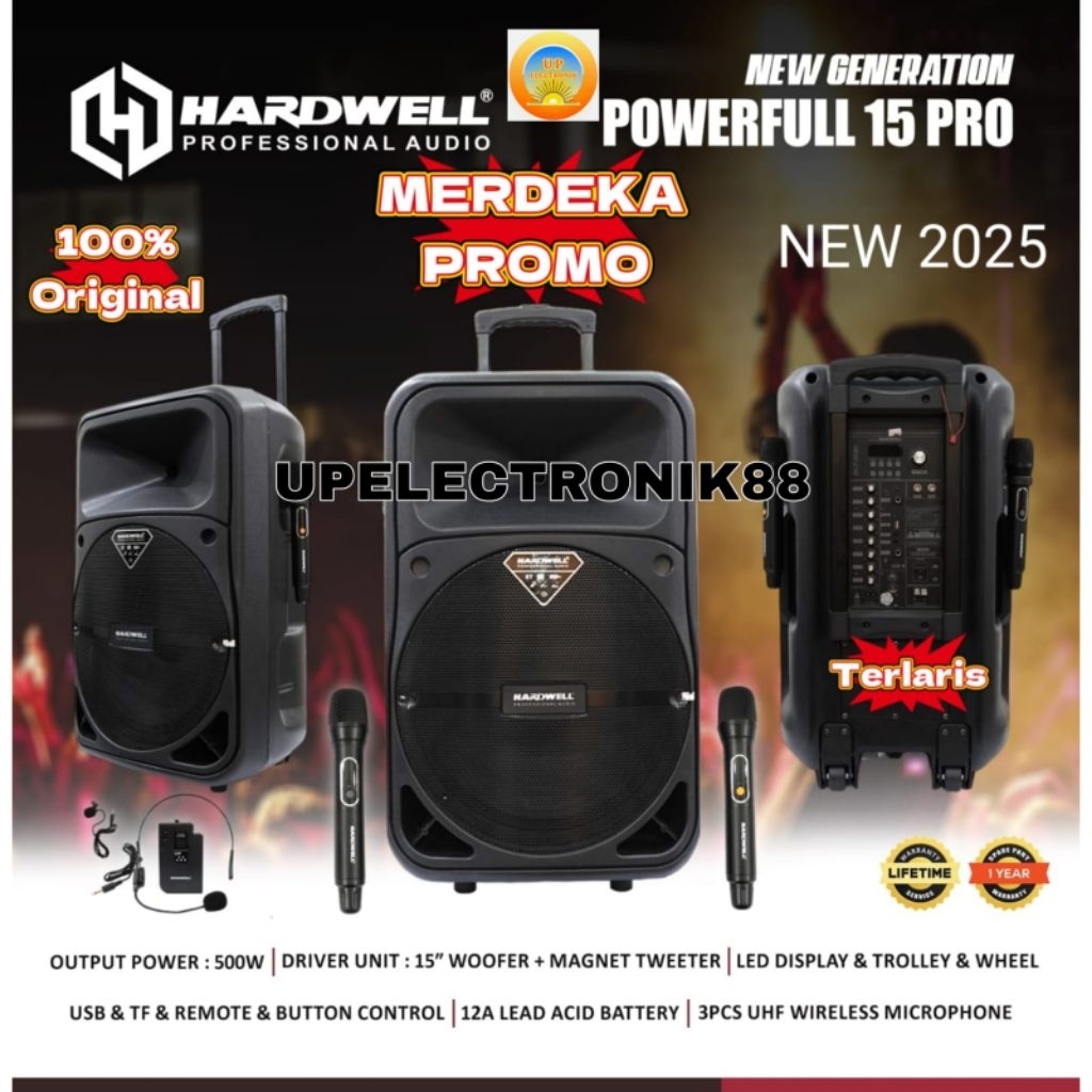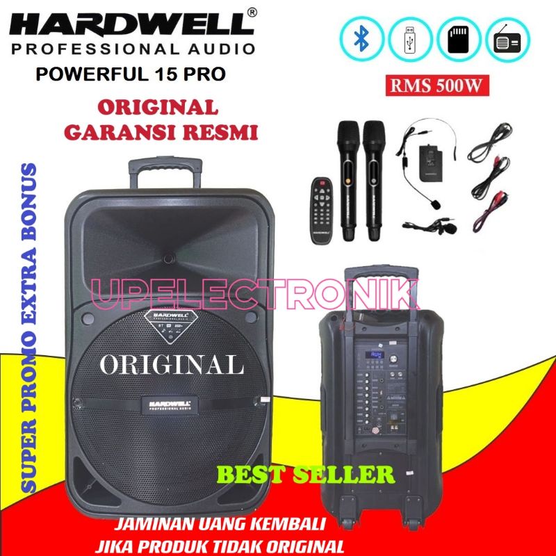 Speaker Portable Aktif 15 Inch Hardwell Powerfull 15 Pro RMS 500W Bluetooth FM Radio Reverb Original