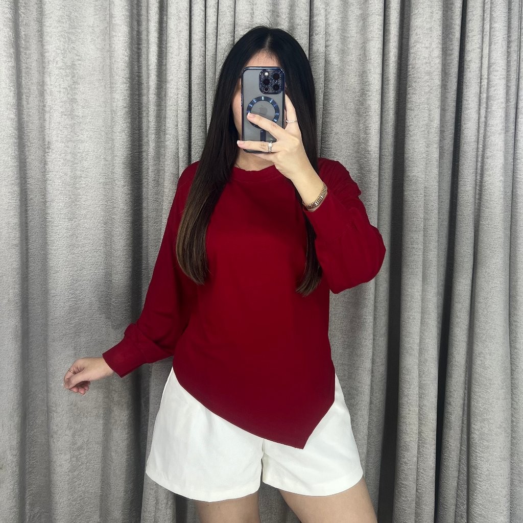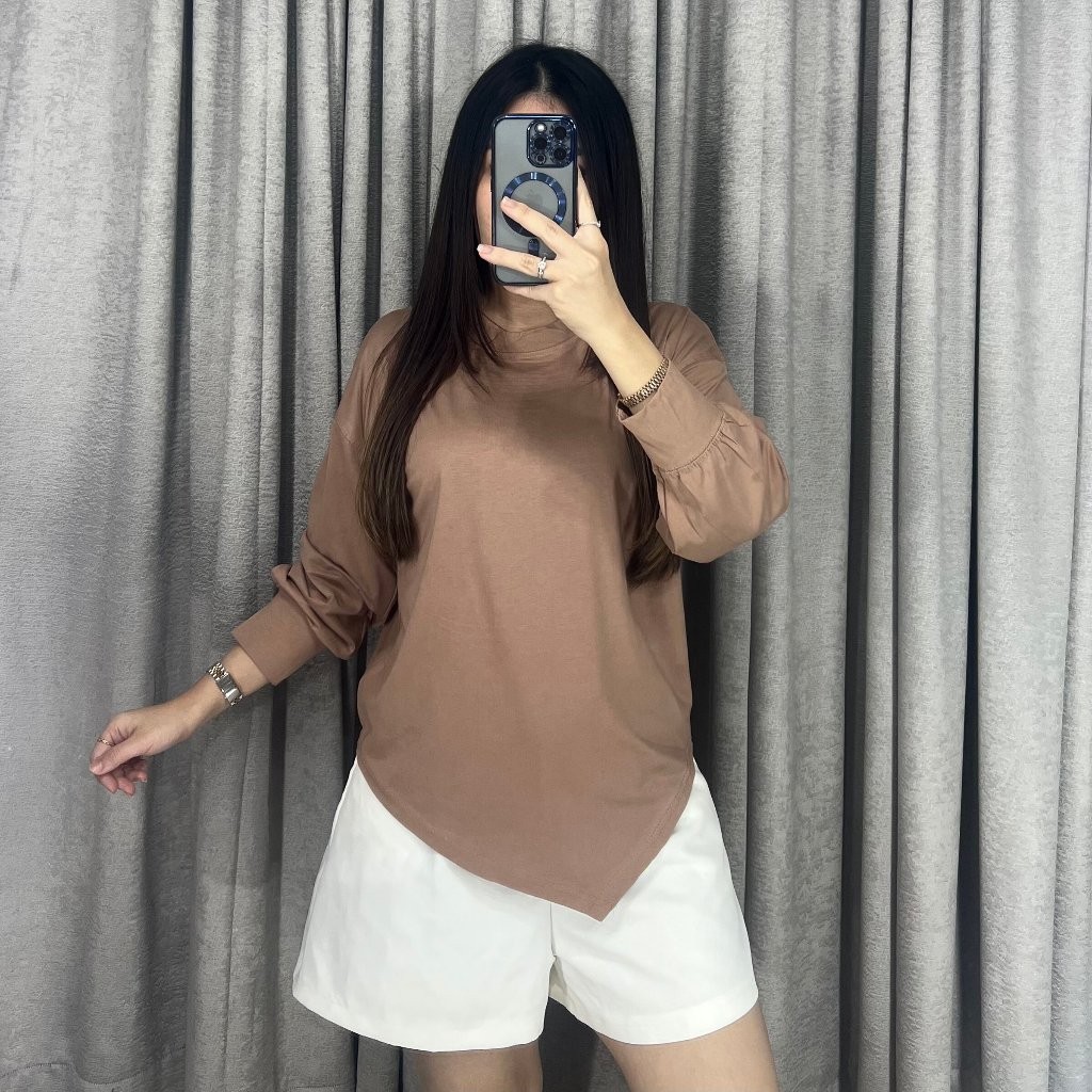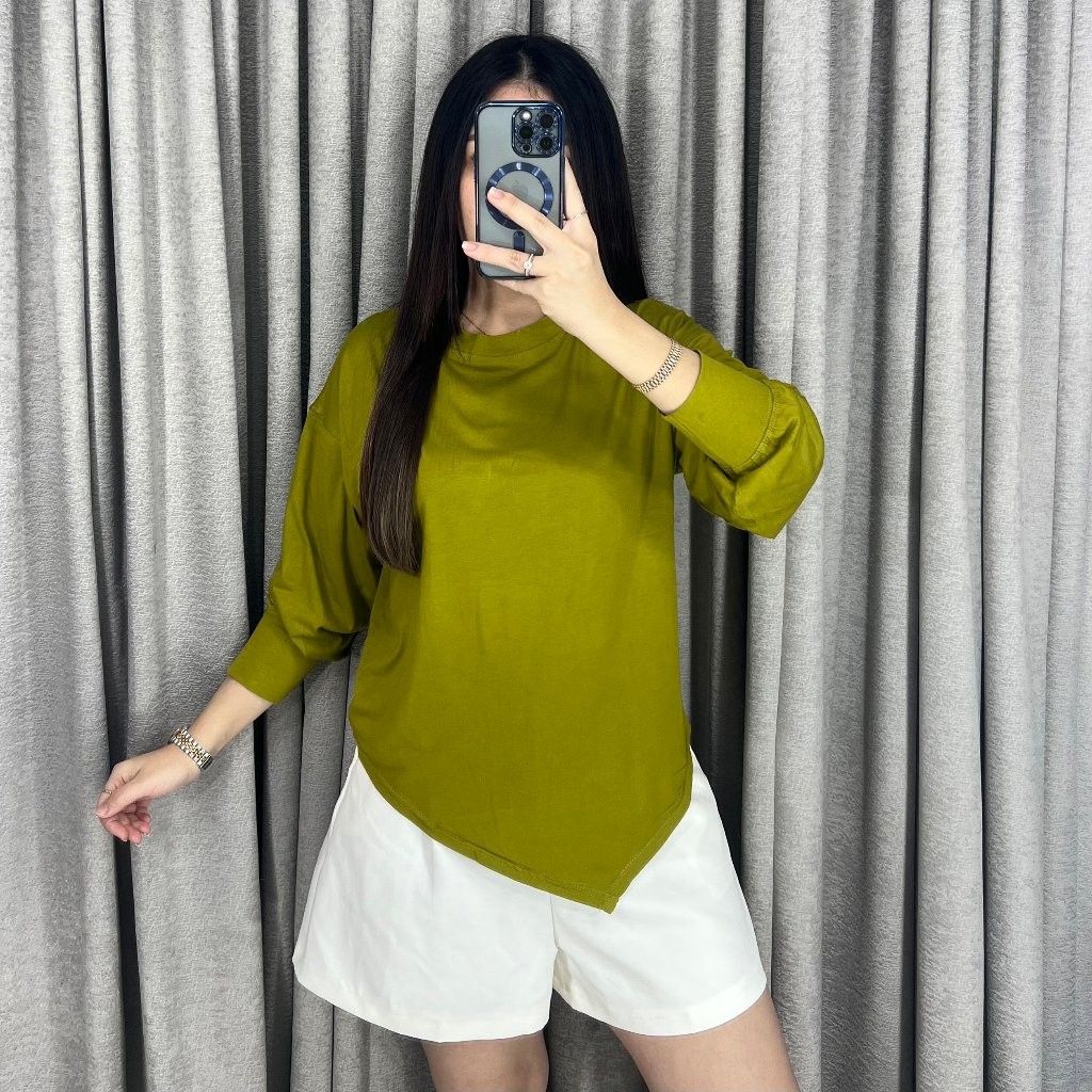 Kaos Tshirt Wanita Lengan Panjang Asymmetric Top