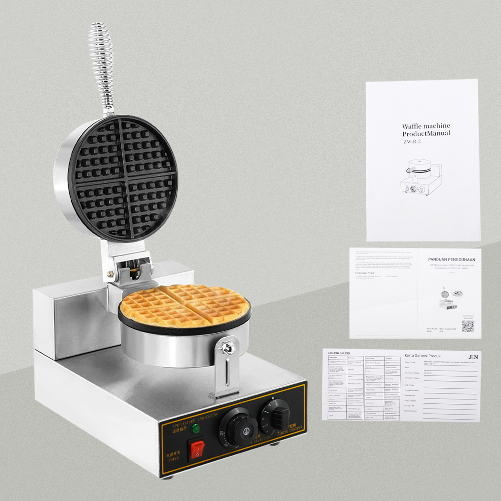 Mesin Cetakan Waffle Single Head Double Sides Electric 1200W 220V Silver XC-HF-1 ABR