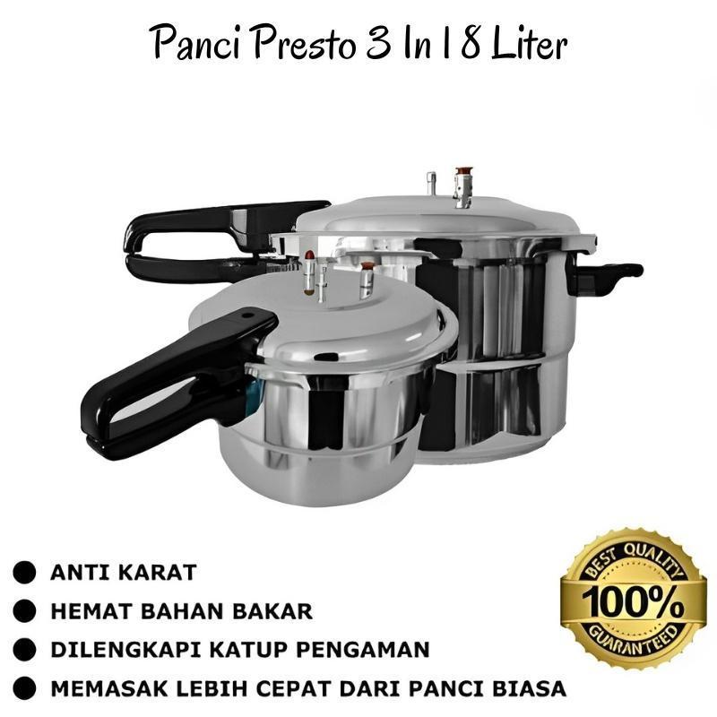 Panci Presto Aluminium 4, 5, 6, 8, 10, 12 Liter Anti Karat, Kunci Keamanan, Hemat Gas