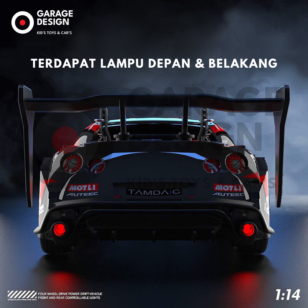 (TERDAPAT LAMPU) RC Drift 4WD Proportional Nissan GTR Nismo 1:14 - Remote Control Mobil Drift 1/14 2.4GHz Merah Terdapat