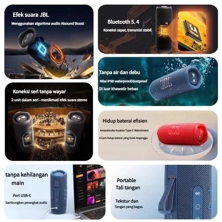 JBL Flip 7 Waterproof Portable Bluetooth Speaker Powerful Sound and Deep Bass IP68 Waterproof Garansi Resmi