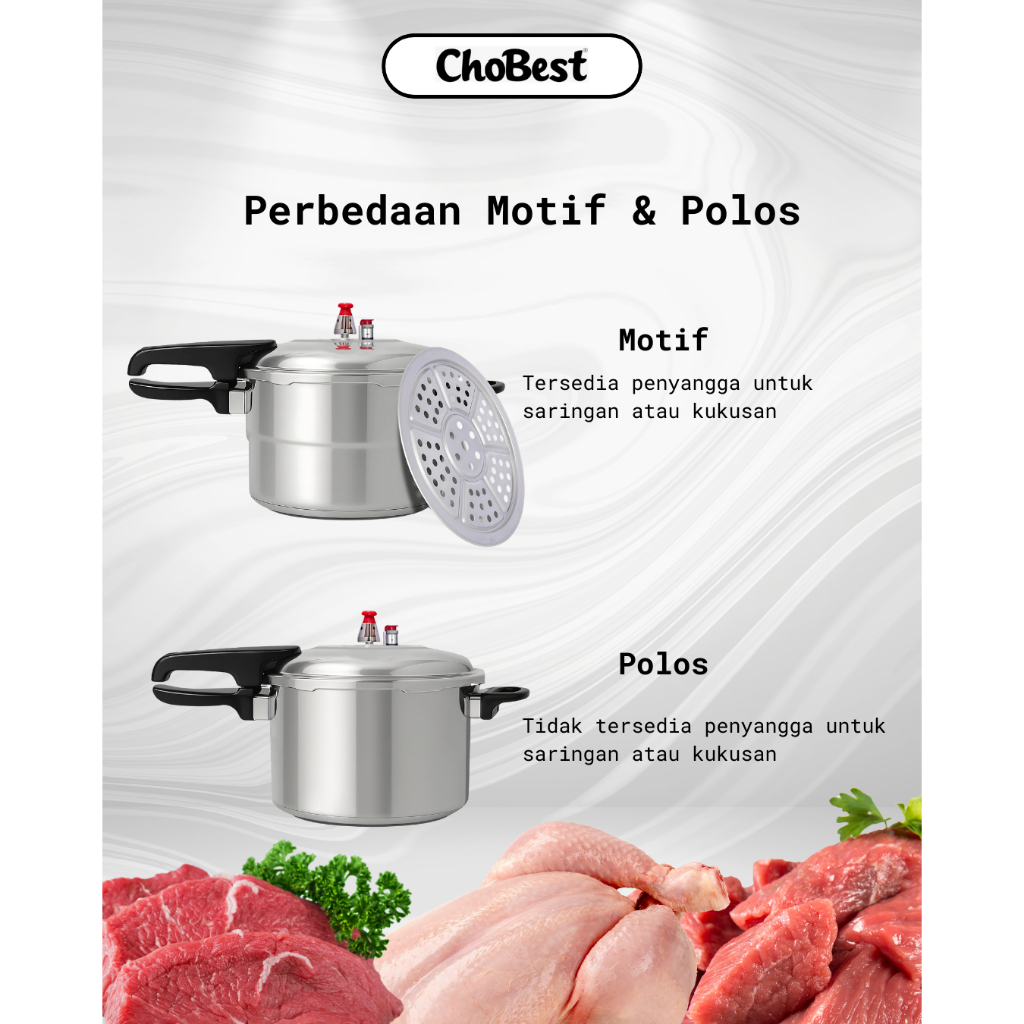 ChoBest Panci Presto Size 8L, 10L, 12L | Anti Karat & Masak Cepat | Berkualitas Tinggi| Motif/Polos