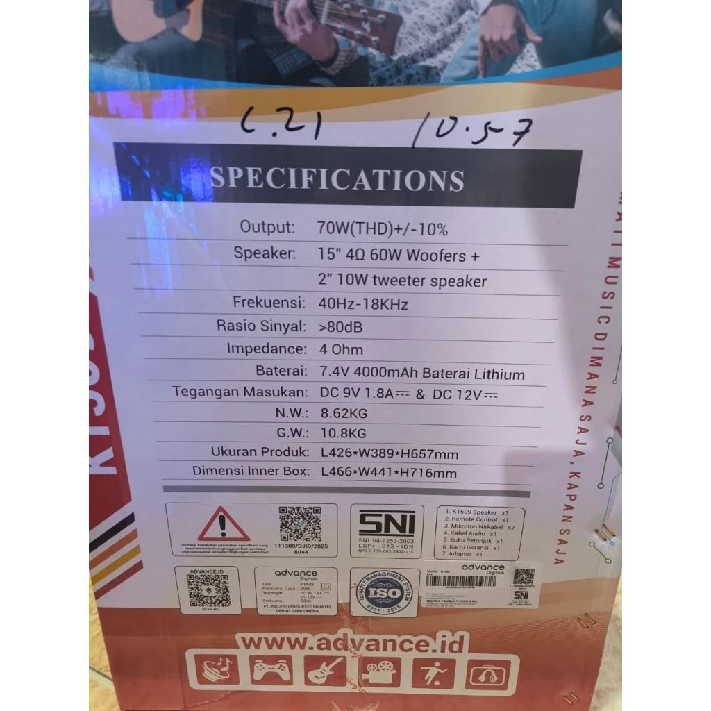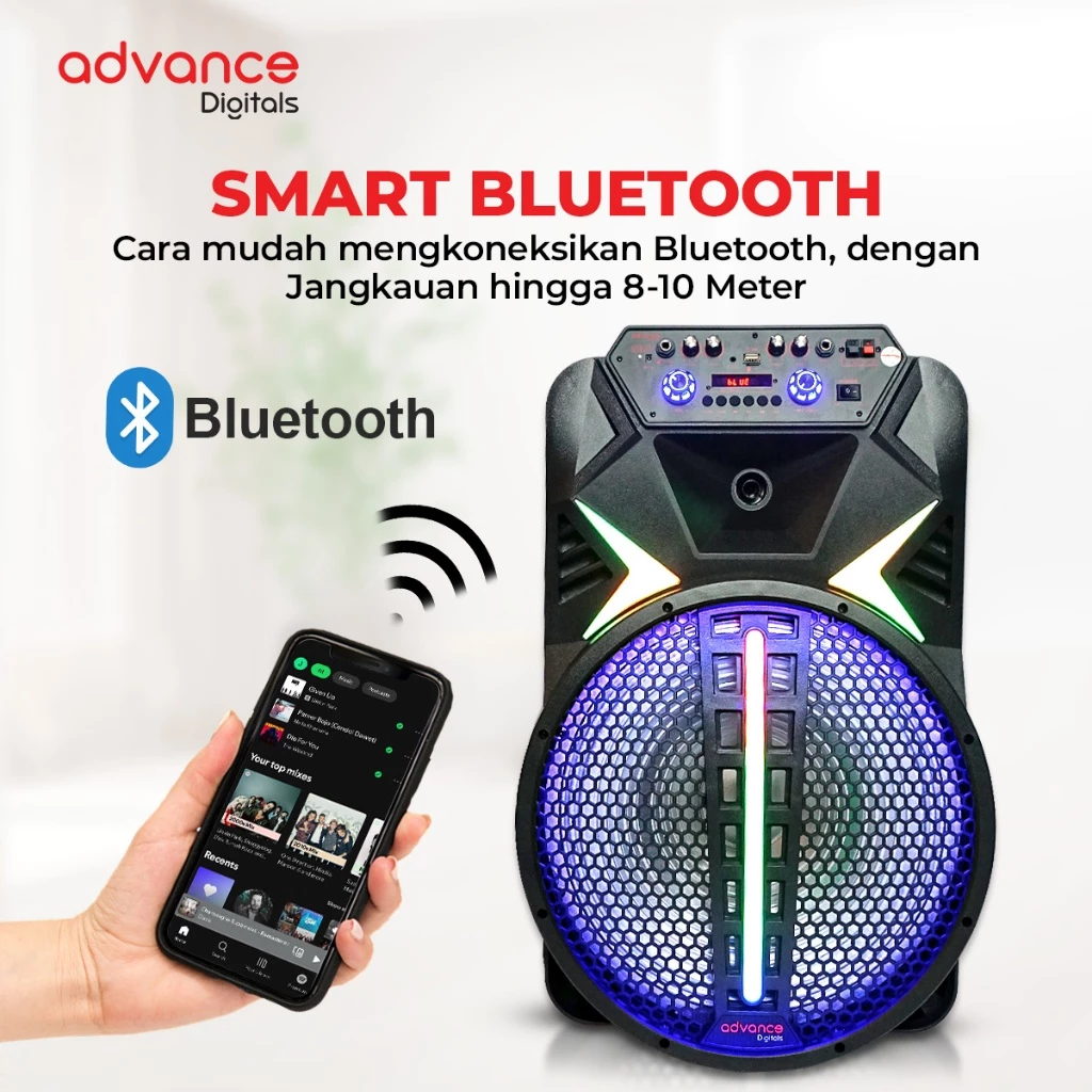 Speaker Portable Bluetooth ADVANCE K1509 15 INCH + 2 Mic Wireless