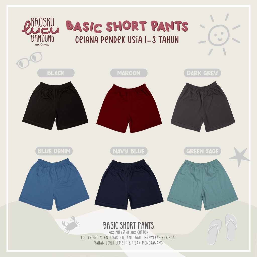 Celana Pendek Anak Polos Unisex Umur 1-3 Tahun Celana Pendek Laki-Laki Perempuan Celana Harian Santai Katun