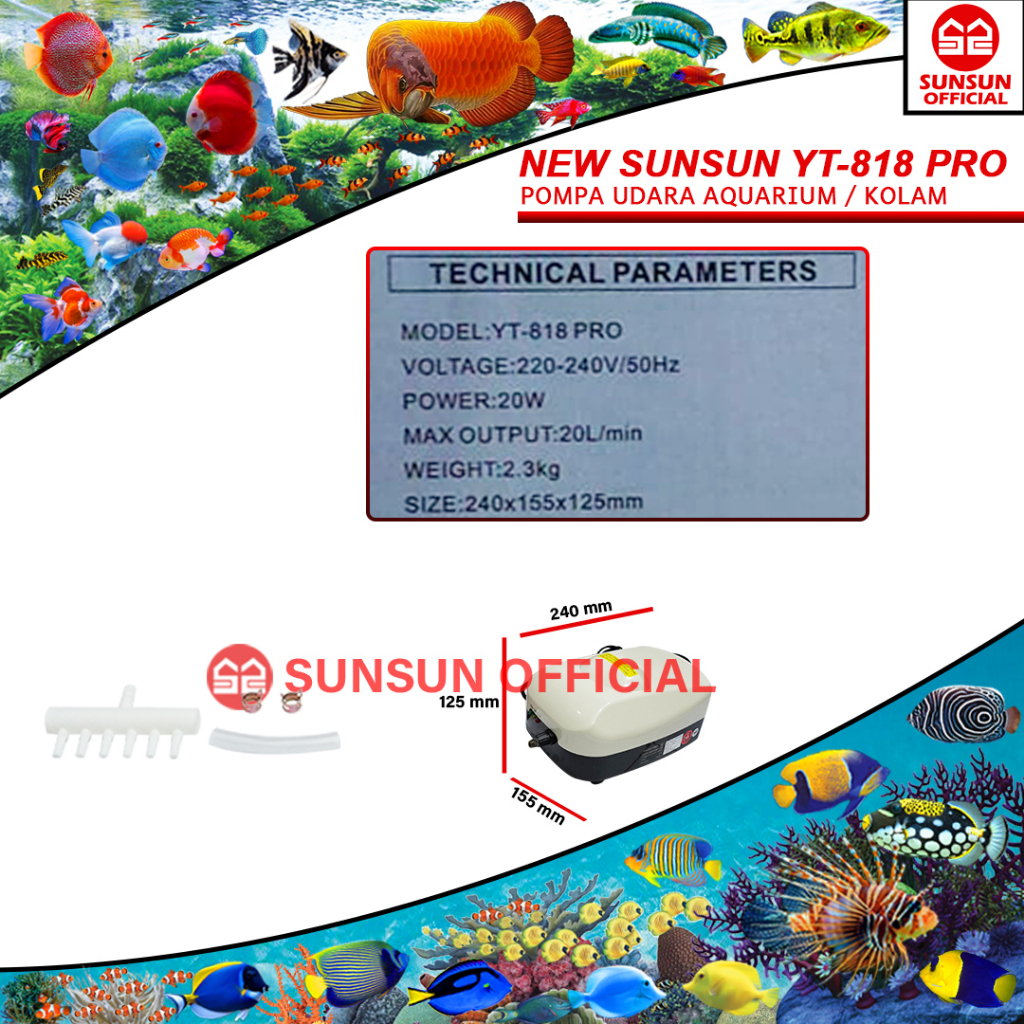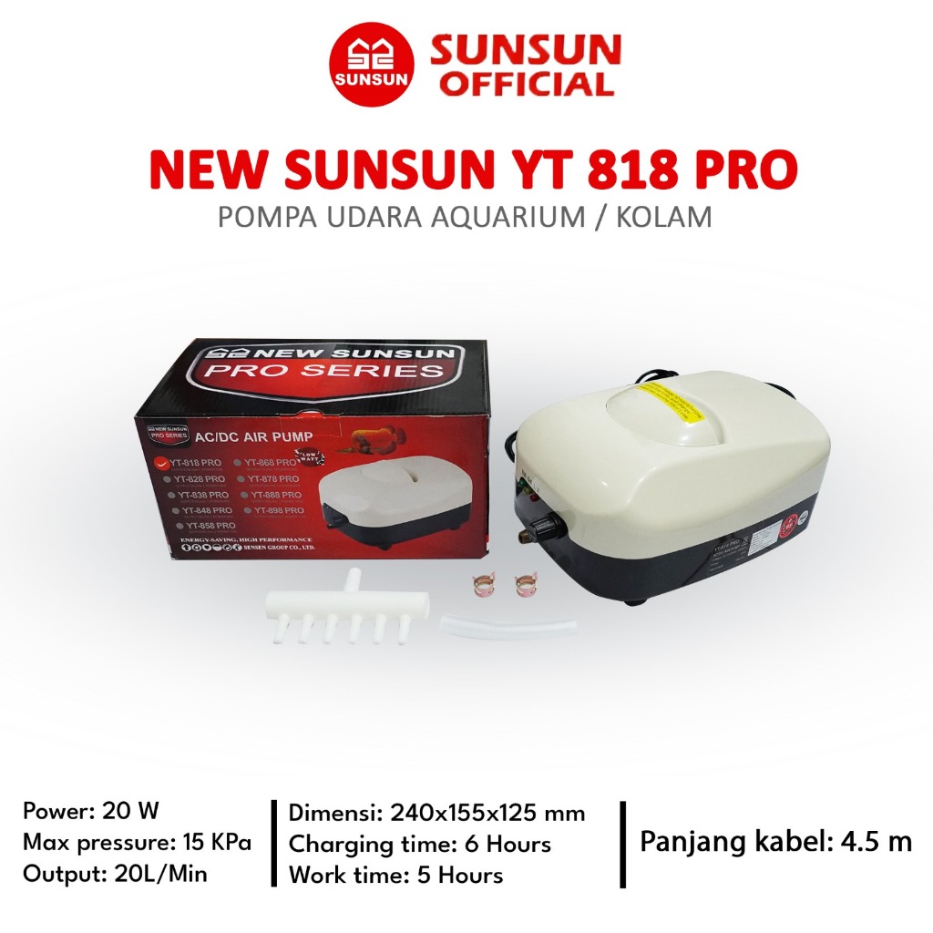 NEW SUNSUN AC DC AIR PUMP YT 818 PRO Pompa Udara Kolam Aquarium