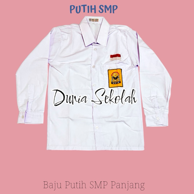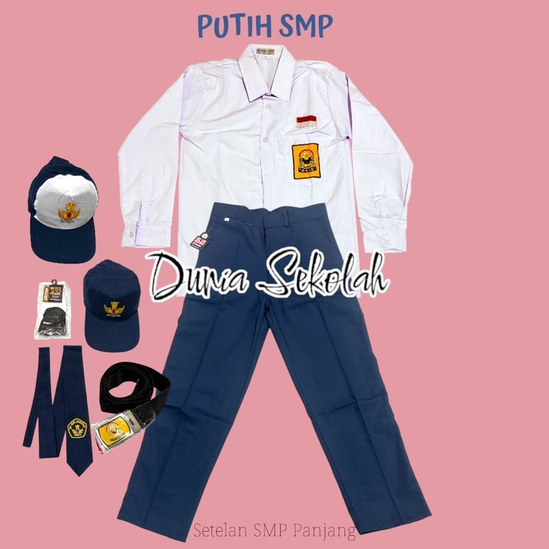 Setelan Lengkap Seragam Sekolah SMP Biru Putih Anak Laki Laki Baju Putih Lengan Panjang Celana Biru Panjang