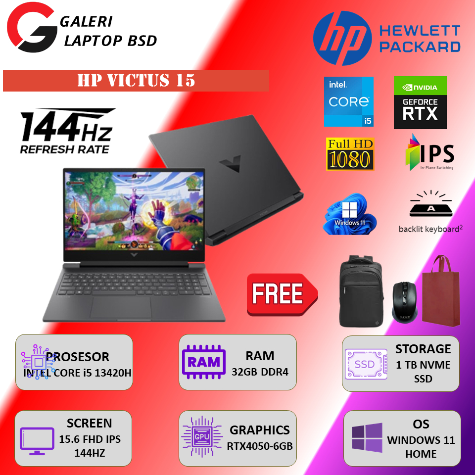 HP Victus 15 Gaming Intel i5 13420H RTX4050 Ram 32GB SSD 1TB Full HD IPS 144Hz Windows 11 Terbaru