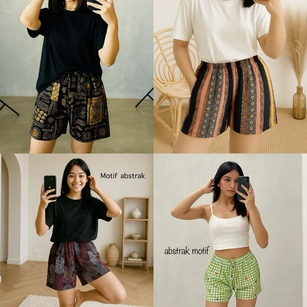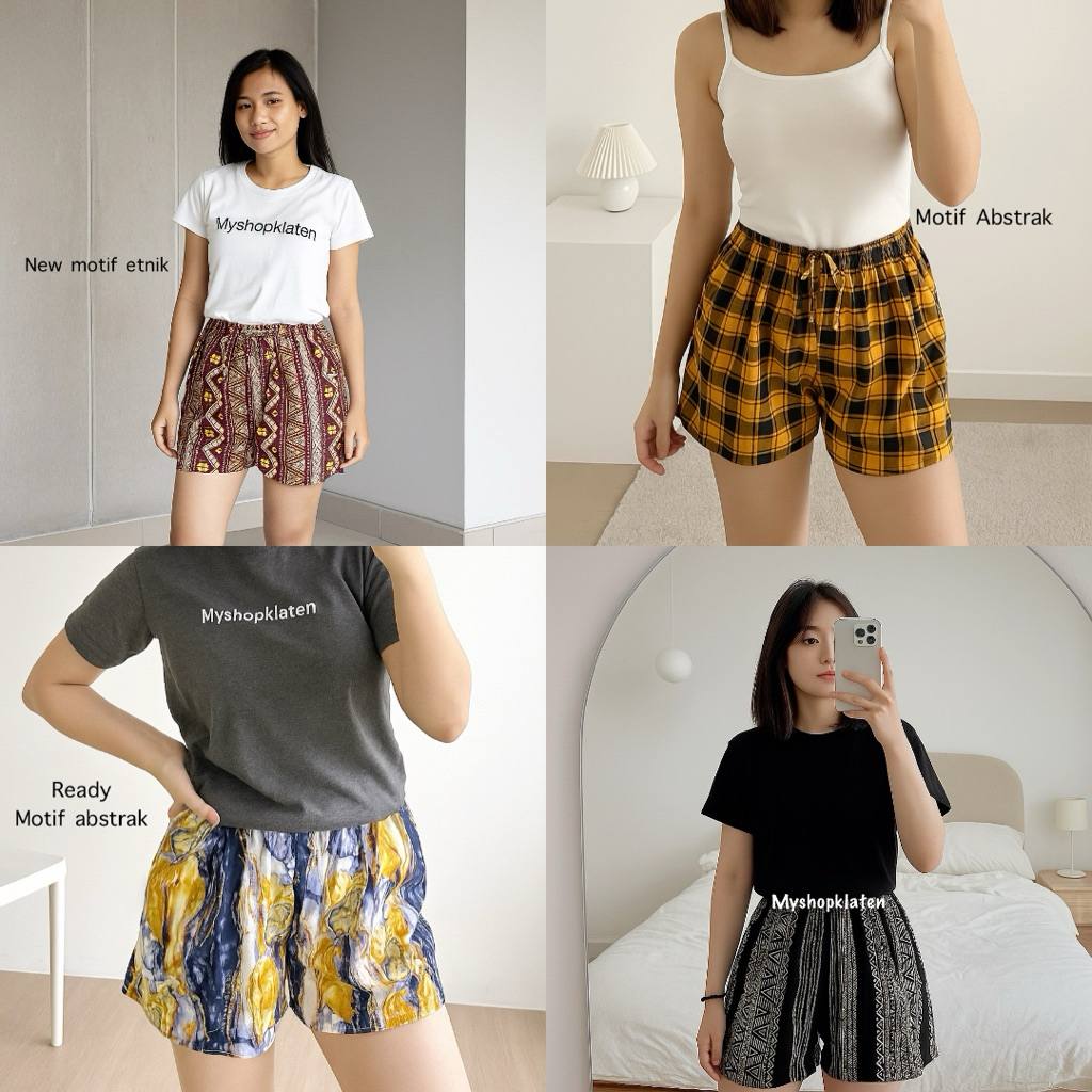 Celana Wanita Shortpants Rayon Premium Pendek Motif Wanita Santai Nyaman Tidur Shorts Celana Isi 3 5 10 Pcs