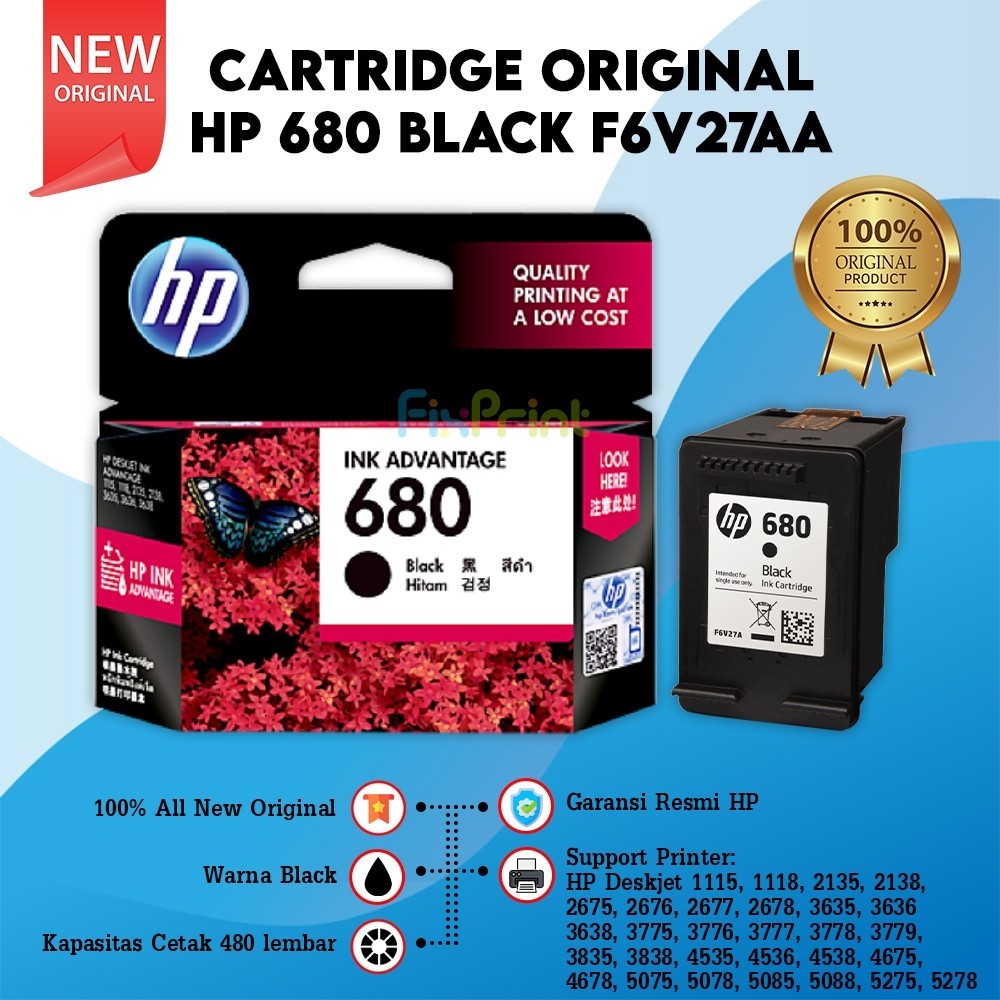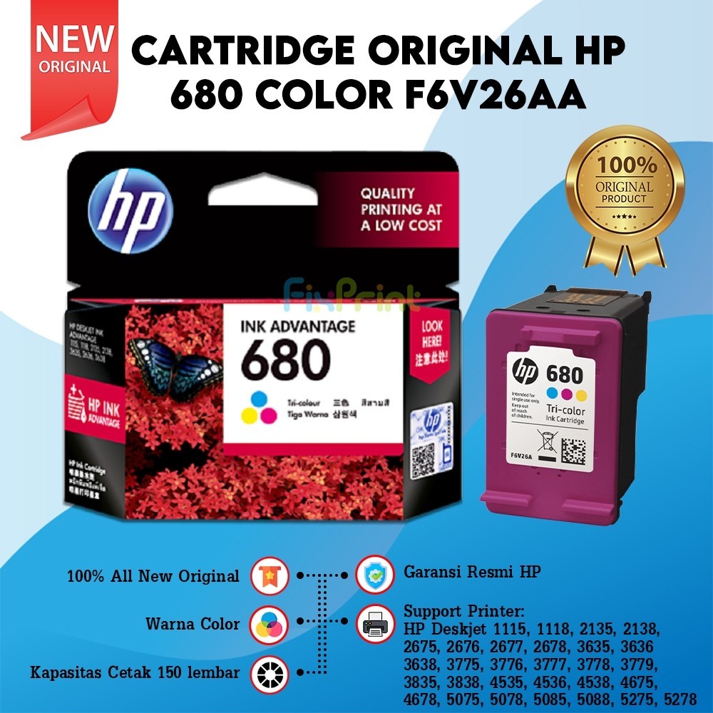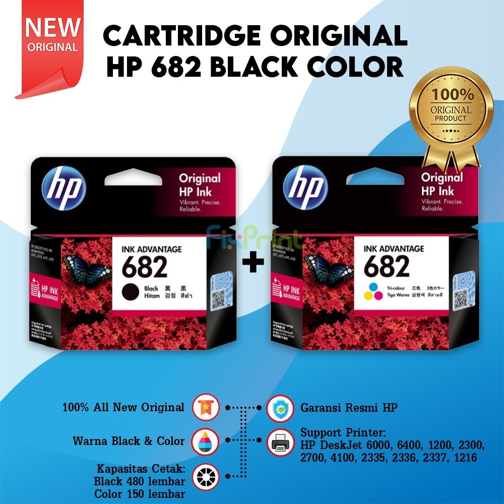 Cartridge Tinta HP 680 682 Black & Color Original Catridge Printer HP Deskjet 6000 6400 1200 2300 2700