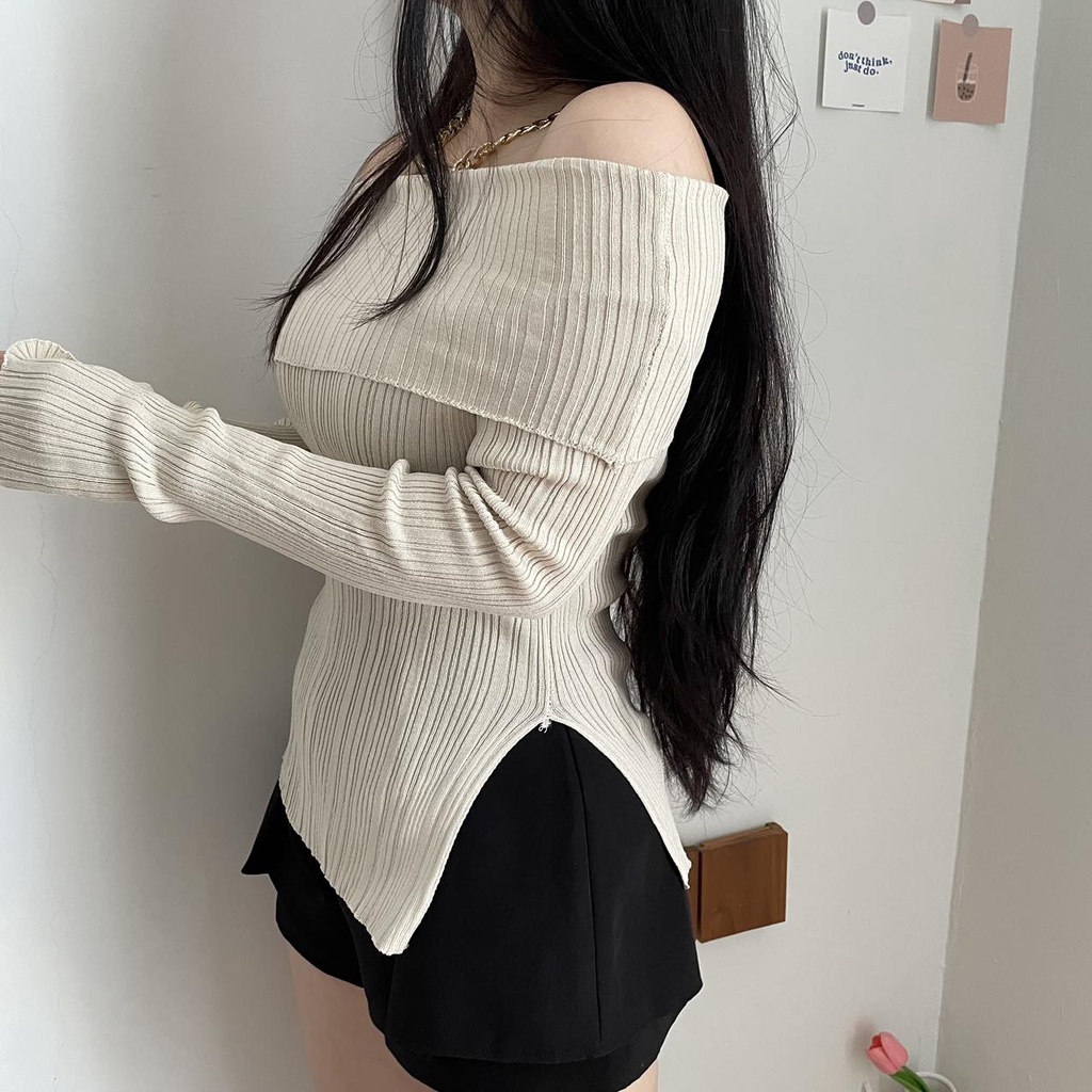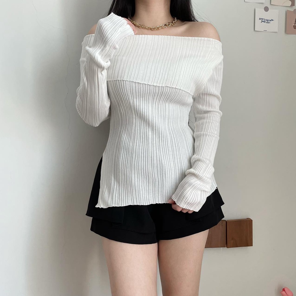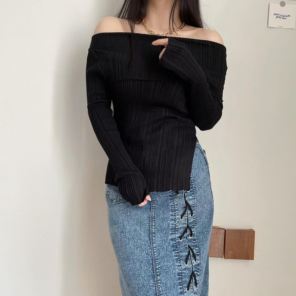 Baju Wanita Sabrina Knit Top Wanita Import Long Sleeve Korean Style Sabrina Rajut