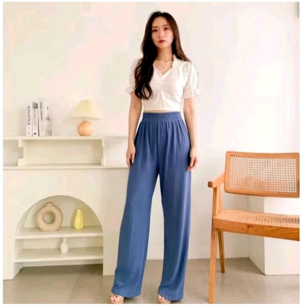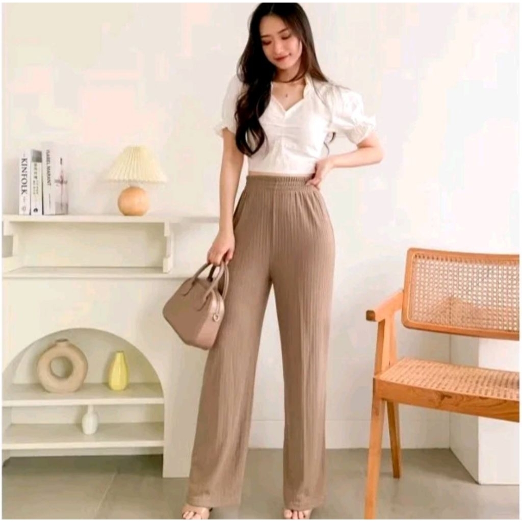 Celana Kulot Wanita Rib Knit Highwaist Full Karet Kualitas Premium