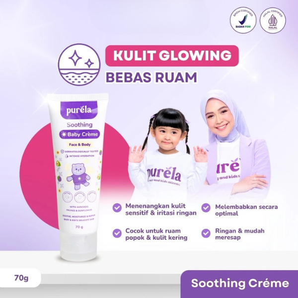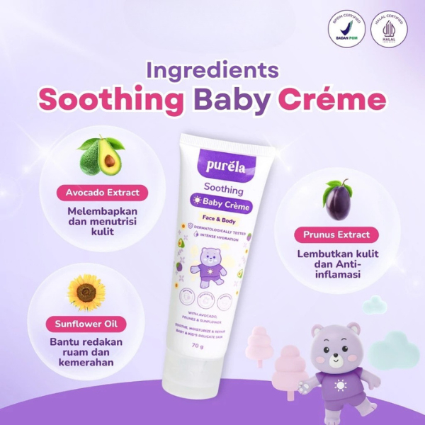 Purela Soothing Baby Cream Face and Body 70gr Pelembab Pencerah Wajah Anak