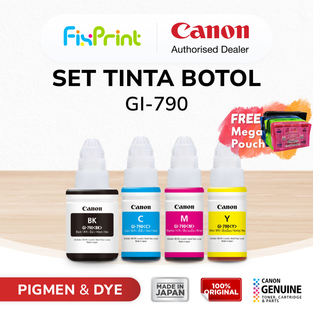 FixPrint Tinta Original Canon Gi 790 Gi790 Black Cyan Magenta Yellow for Printer Canon MegaTank G1010 G2010 G3010 G4010