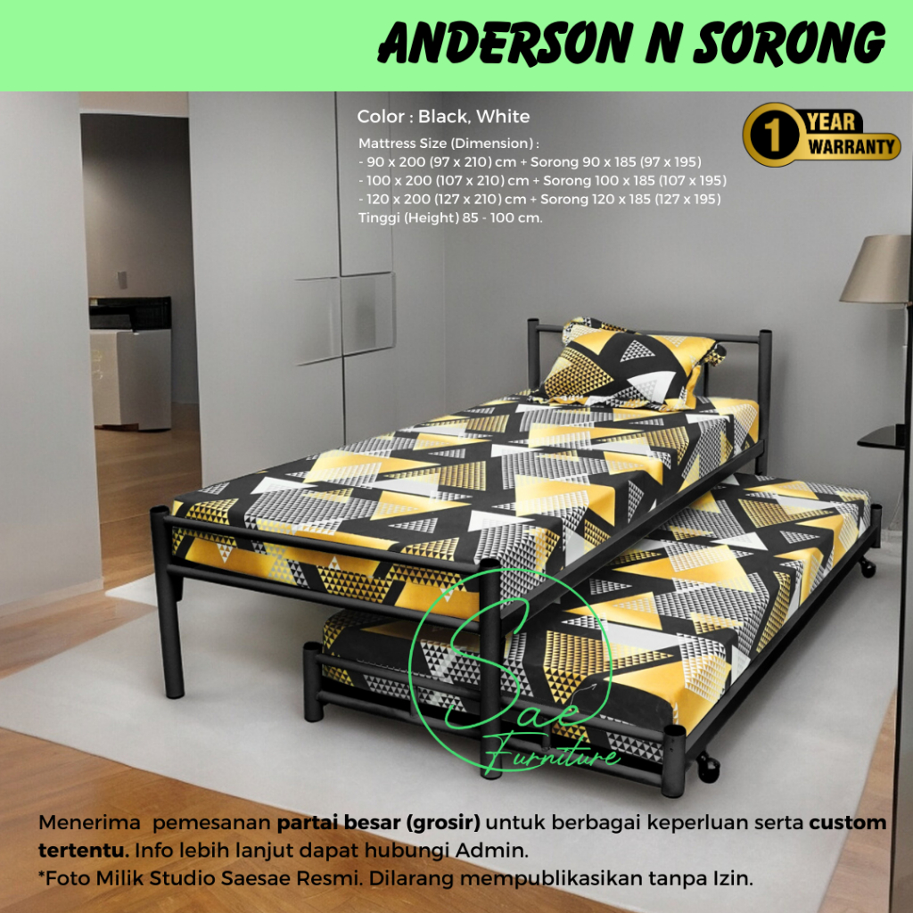 [Star] Ranjang Tempat Tidur Susun 2 Tingkat Besi Lipat Anak Dewasa Divan Single Sorong 200x90 200x100 200x120 Minimalis