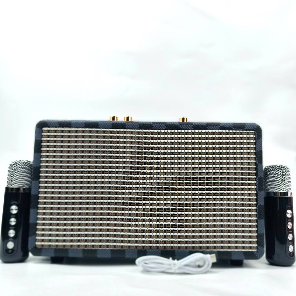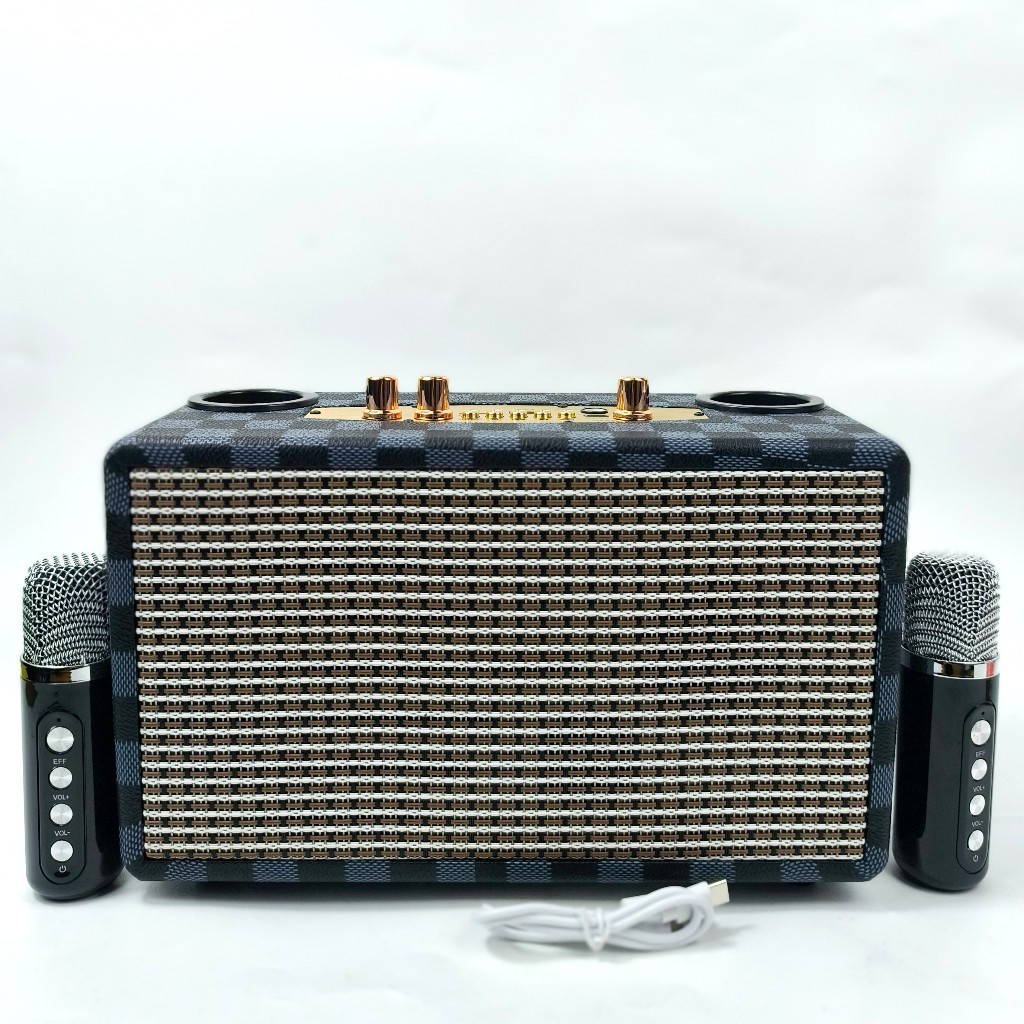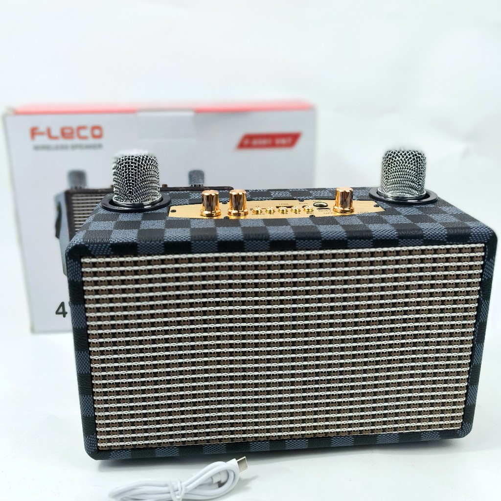 Speaker Portable Bluetooth Fleco F-6581 VNT Free 2 Mic Wireless BT FM AUX Bass Vintage Style