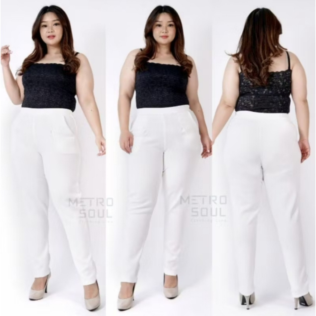 Celana Panjang Wanita Jumbo Scuba Melar Polos