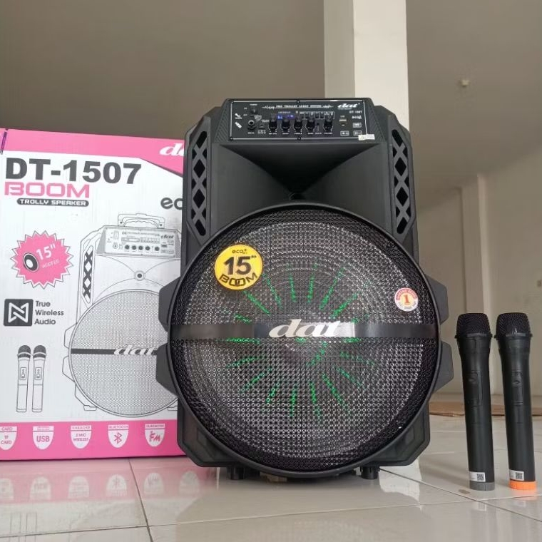 Speaker 15 Inch portabel Dat DT1507 Boom free 2 mic wireless