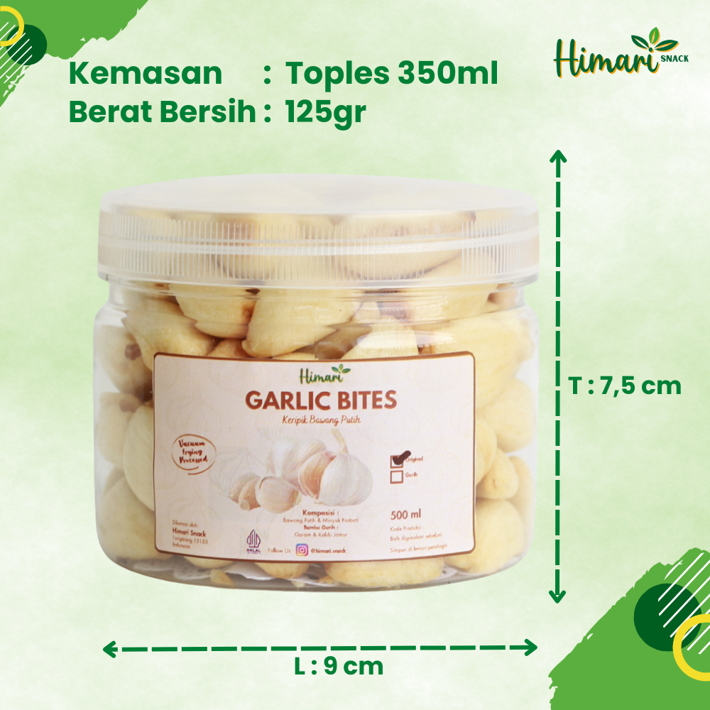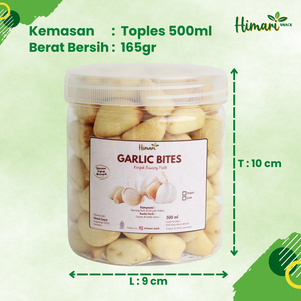 Keripik Bawang Putih Himari Garlic Bites Snack Cemilan Sehat Kemasan Pouch 70gr dan Toples 350-500ml