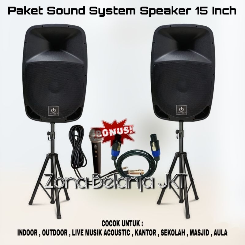 PAKET SOUND KARAOKE HEMAT INDOOR OUTDOOR SPEAKER AKTIF 15 INCH CRIMSON MIXER MIC WIRELESS TERMURAH BERKUALITAS