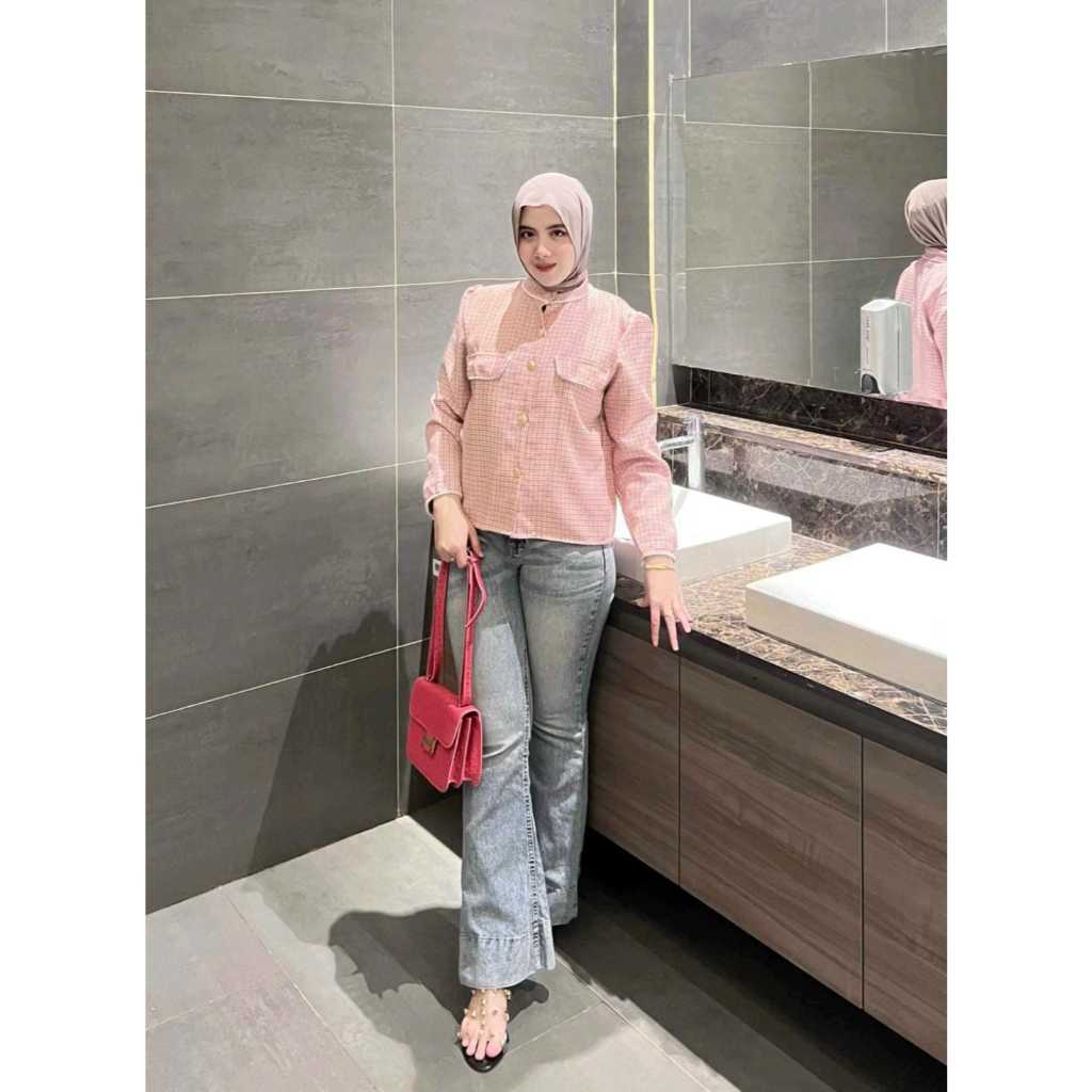 Kazumi - Cutbray Jeans Janita Higwaist Lipat Kaki Besar Jeans Strech Wanita Bawah Lebar