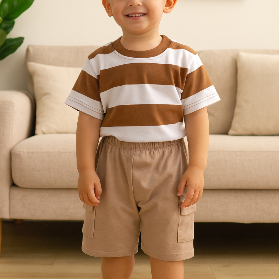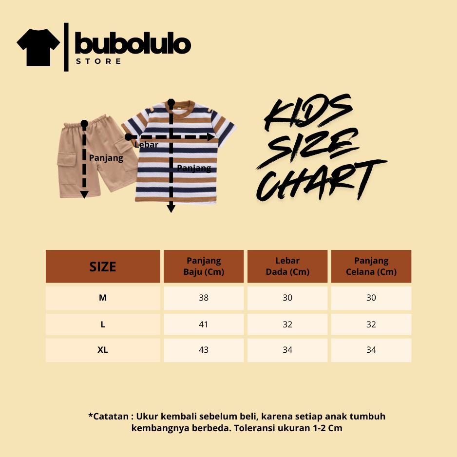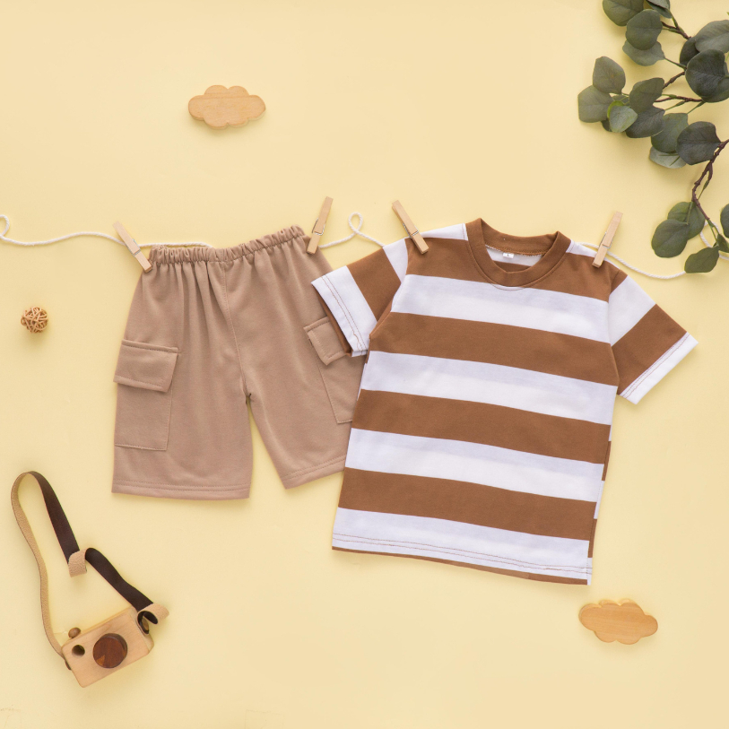 Setelan Anak Kaos Salur Dan Celana Cargo Size M L Xl