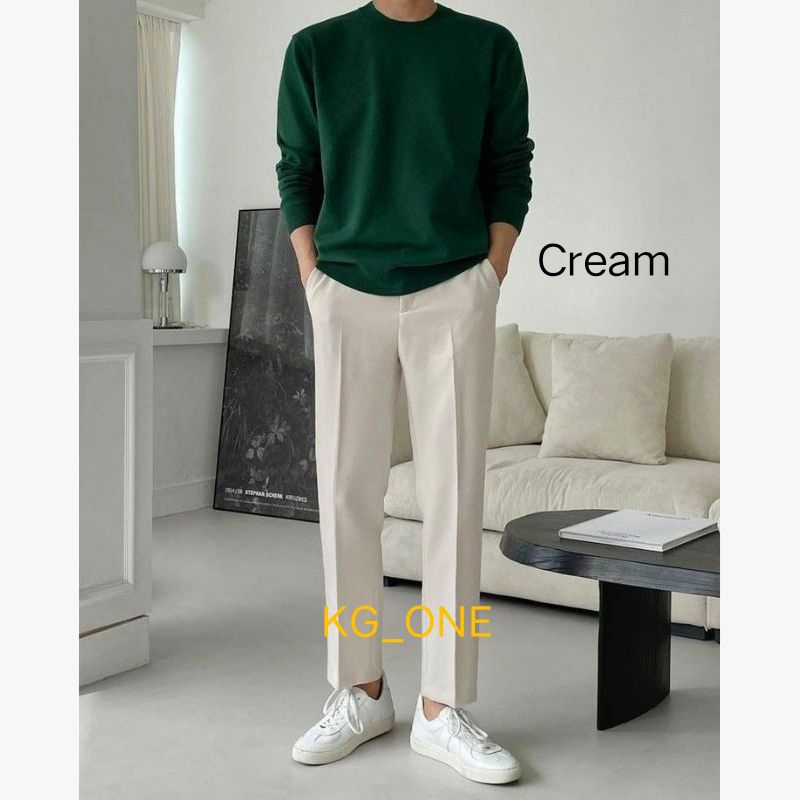 Celana Formal Pria Slimfit Santai Casual Cream Mocca Putih Katun