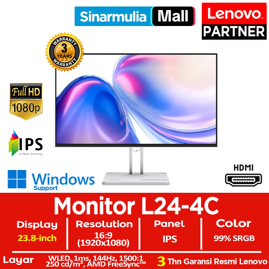 Monitor LED Lenovo L24-4C 23.8" IPS 144Hz 1ms HDMI VGA 99 PERSENsRGB Eye Caring