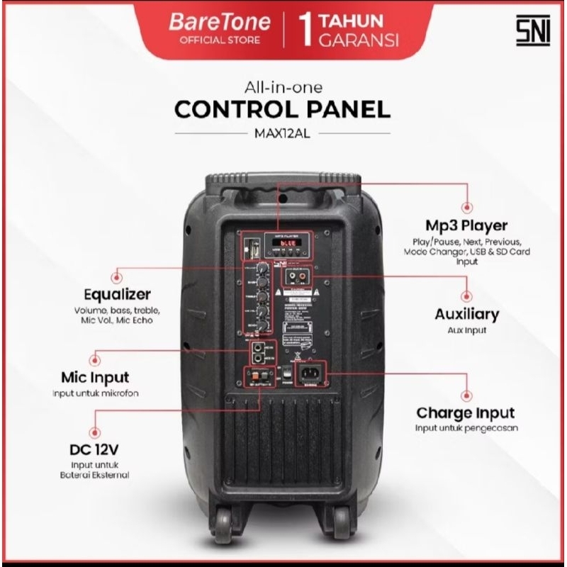BareTone Max12al Speaker Aktif Portable Meeting Wireless Karaoke 12 Inch Bluetooth Plus 2 Unit Mic Wireless BareTone Ori