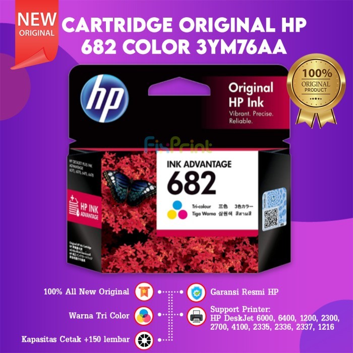 HP Cartridge Tinta 682 Black Color Original Printer Deskjet 6000 6075 6078 6400 6475 6478 1200 2300 2700 4100 2335 2336 2337 2875 2876 1216