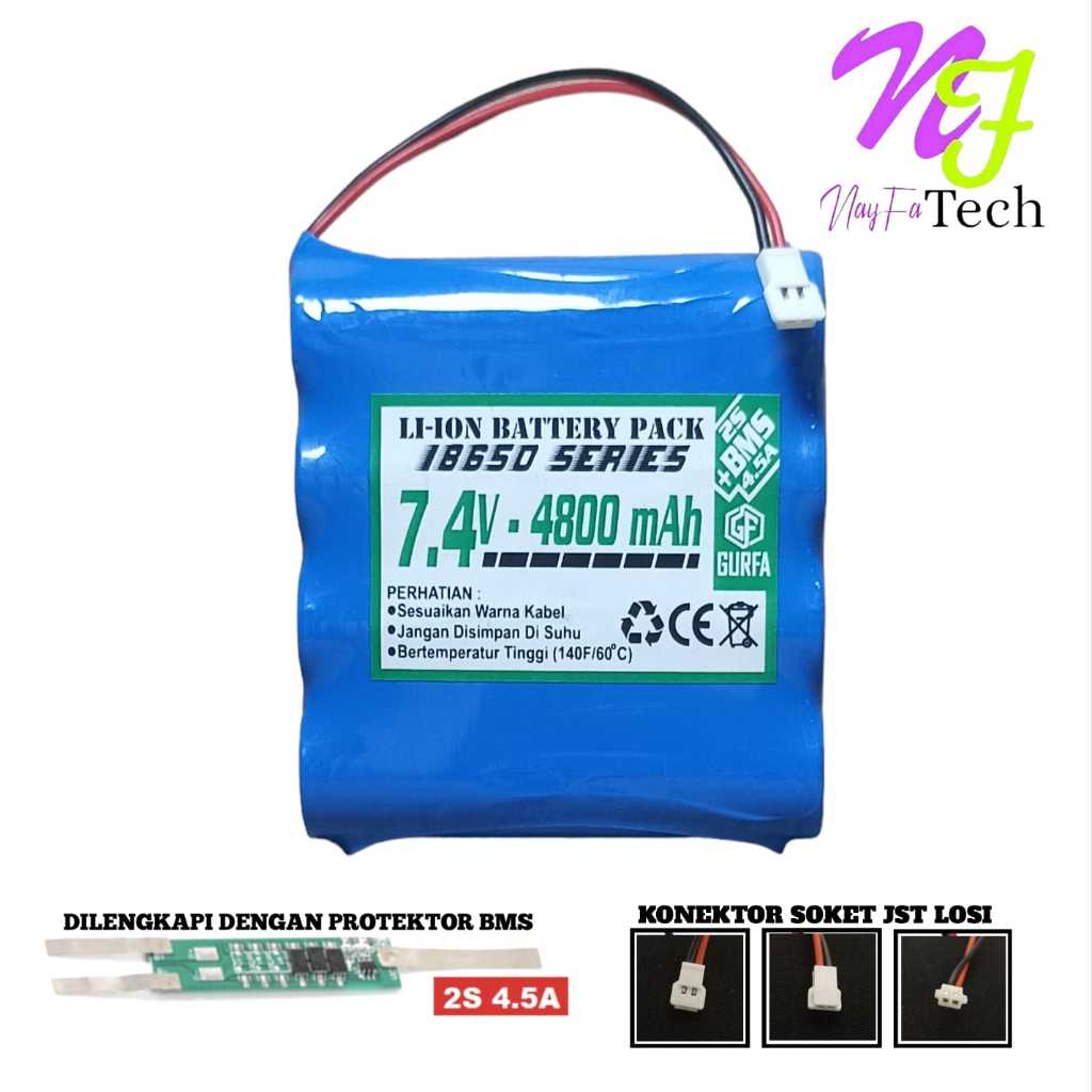 Baterai Cas /Speaker & Elektronik Lainnya 4X 18650-2S 4800mAh 7.4V BMS 4.5A KONEKTOR JST LOSI