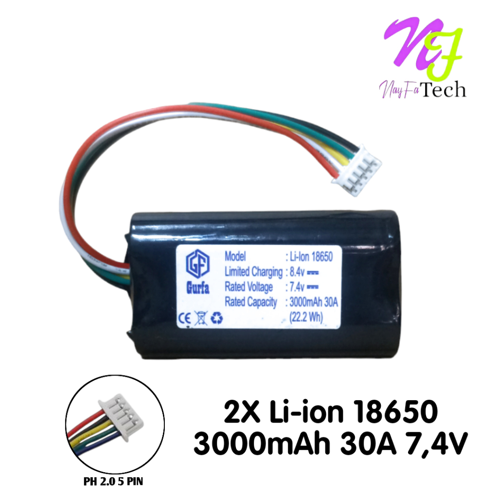 Baterai Speaker / Baterai Alat Elektronik Lainnya 2X 18650 3000mAh 30A 7,4V SOKET JST PH 2.0 5 PIN