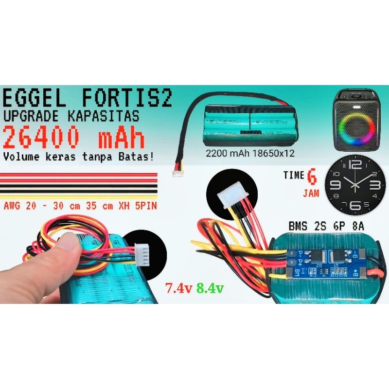 Battery EGGEL FORTIS2 7.4V 8.4V 2S BMS 8A 26400 mAh High Capacity