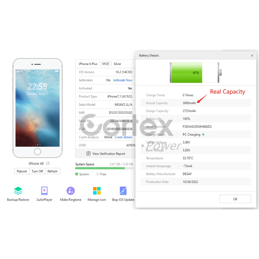 Cortex double Power 2 IC Baterai High Capacity Original Battery Batre Baterai
