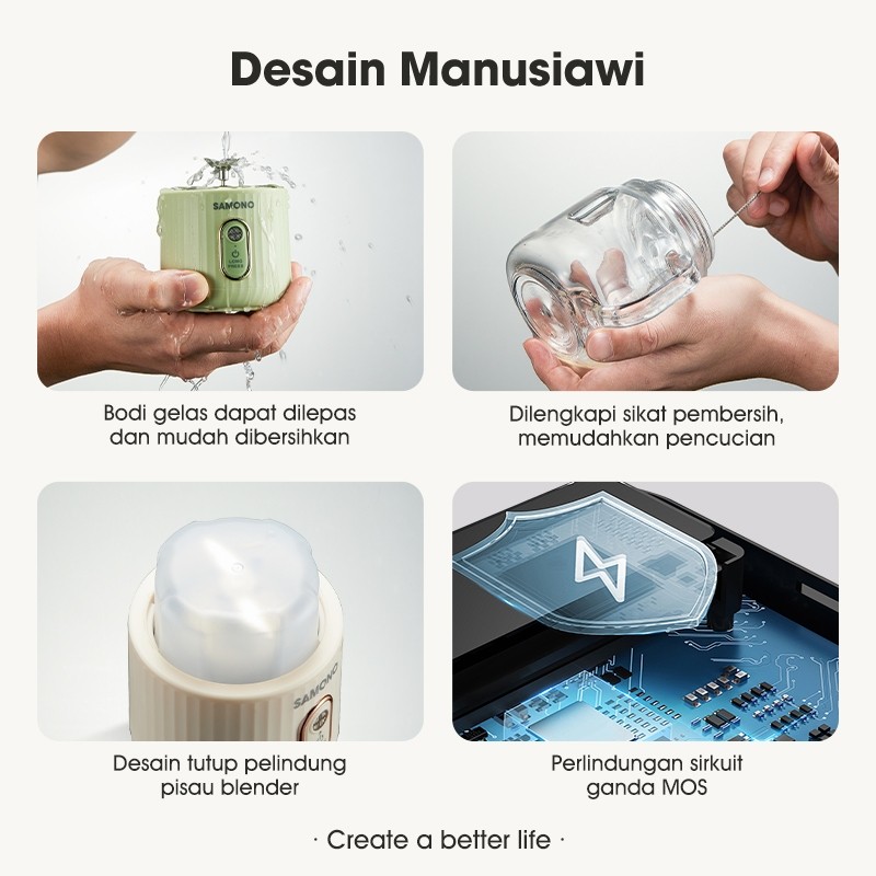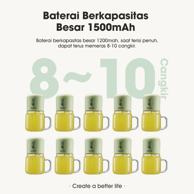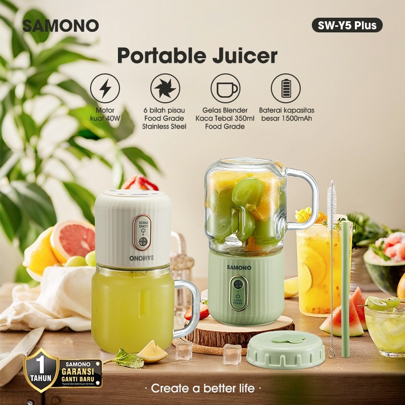 SAMONO Portable Juicer Gelas Kaca 350ml juicer portable blander jus portable belender jus blender buah blender jus buah blender mini portable SW-Y5 Plus