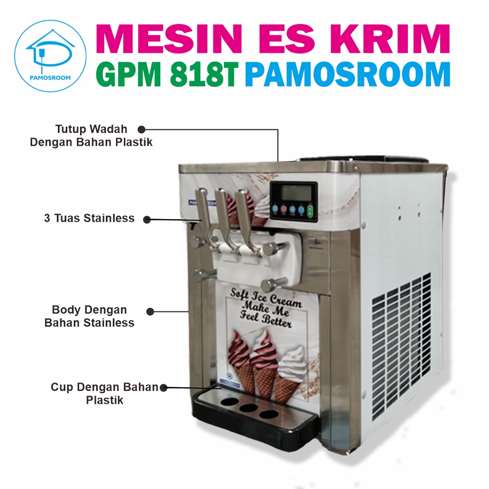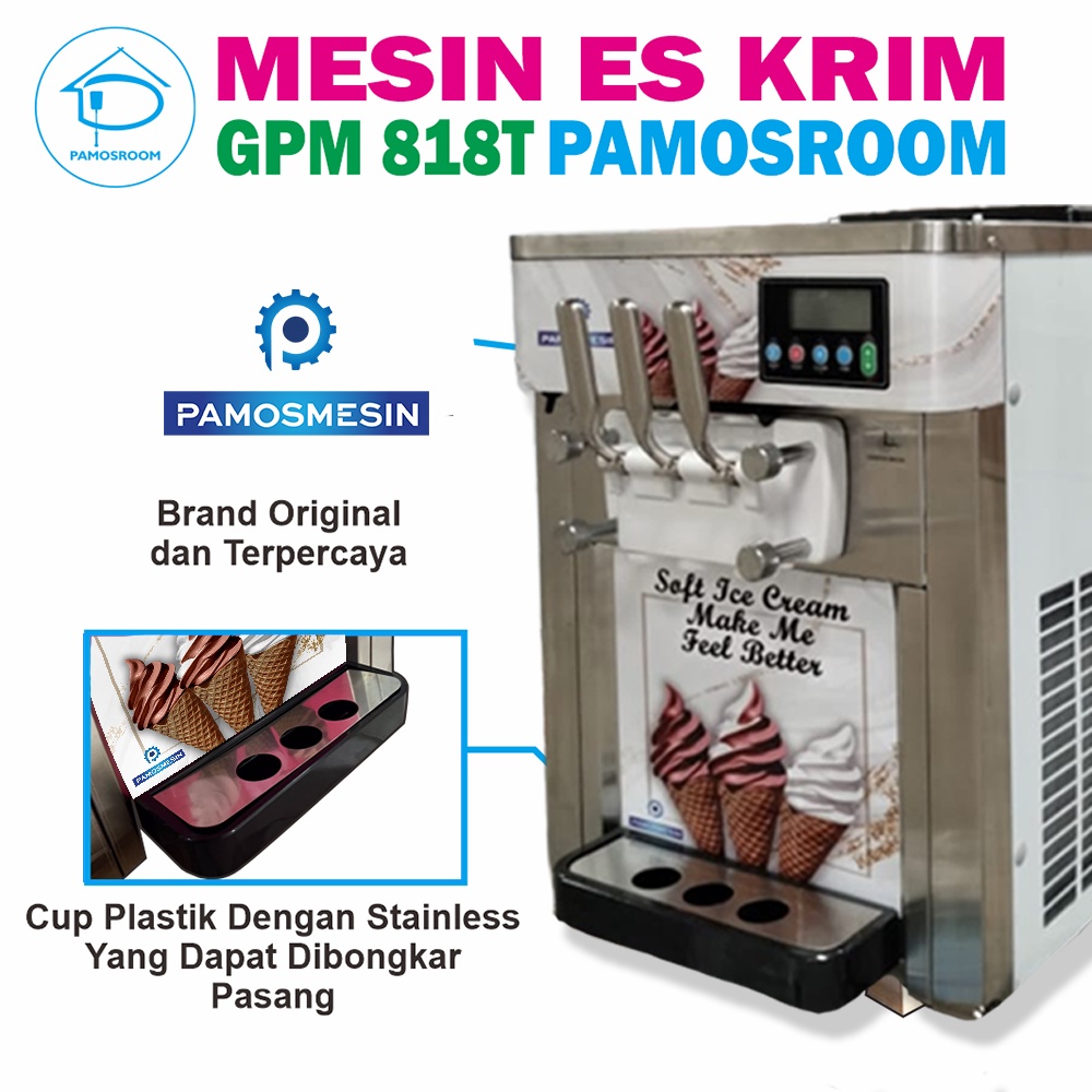 Pamosroom Mesin Es Krim Ice Cream Machine Es Cream GPM 818T 3 Valve 18L / H 1800 Watt Table Type GPM-818T