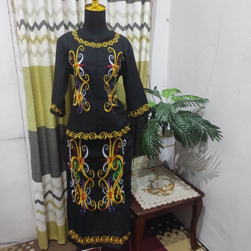 Setelan Bordir Dayak Wanita Drill Lengan 3/4