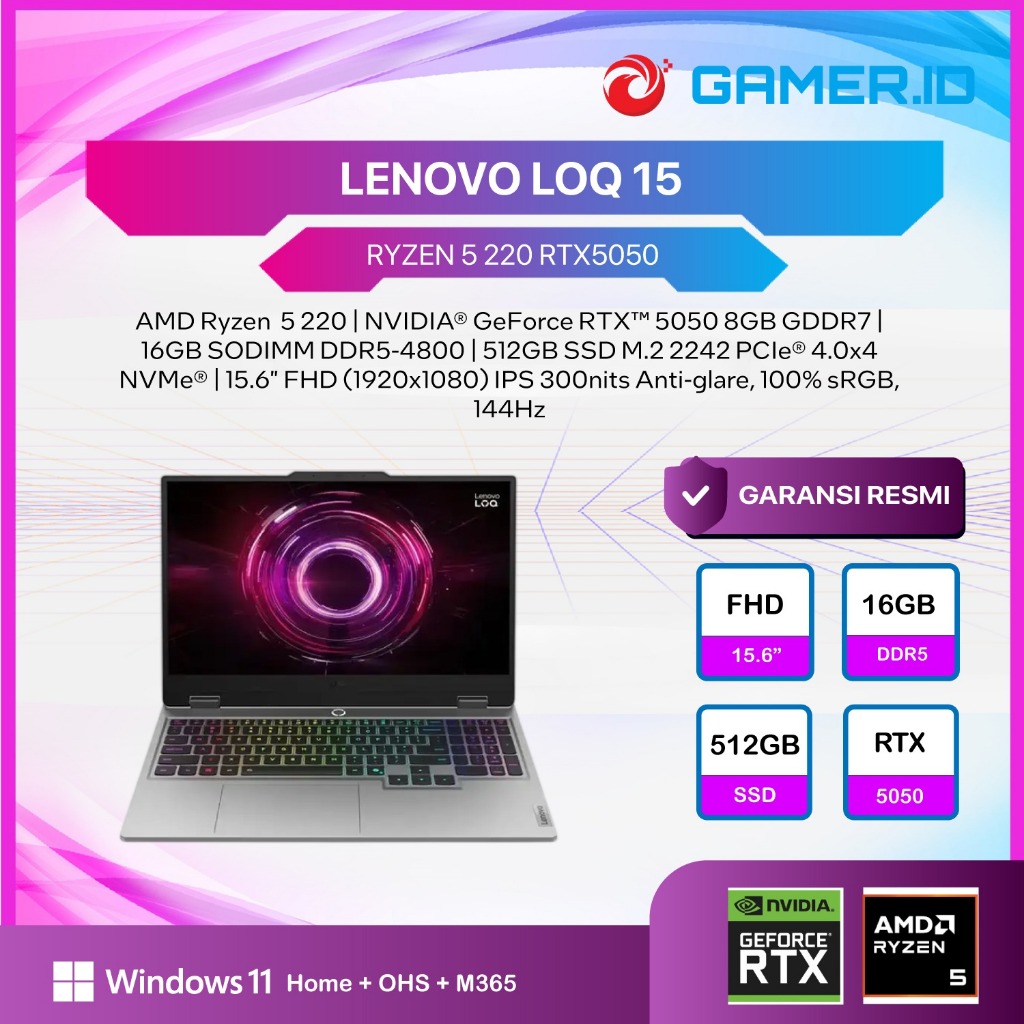 LENOVO LOQ 15 RYZEN 5 220 RTX5050 8GB/ 16GB 512GB W11+OHS+M365B 15.6FHD 144HZ 100SRGB 24ZRGB 2Y+2ADP GREY -73ID